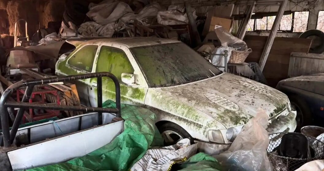 Verborgen in een schuur, alsof iemand ze iets beter wilde beschermen dan de anderen, verpieteren twee exemplaren van de Ford Escort RS Cosworth, een van de meest formidabele auto's uit het GTI-tijdperk. Ook zij zijn bedekt met mos, en jaarlijkse vignetten geven aan dat de auto's daar al bijna 20 jaar staan. Ze lijken er cosmetisch redelijk goed uit te zien, maar er is geen aanwijzing over hun mechanische toestand of de staat van de onderstellen, die misschien door roest zijn aangetast. Voor elke liefhebber van bijzondere auto's is dit een pijnlijk tafereel. En des te betreurenswaardiger als je weet dat een Ford Escort RS Cosworth in goede staat vandaag meer dan 100.000 euro waard kan zijn.