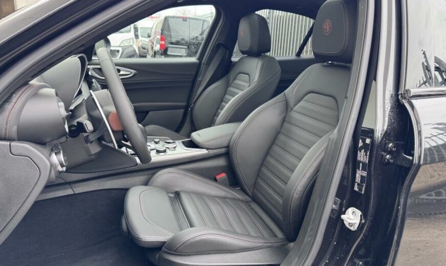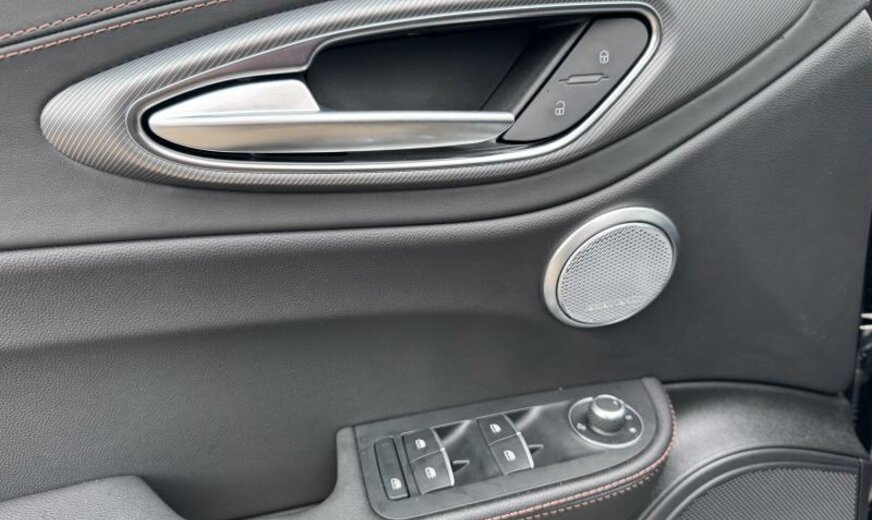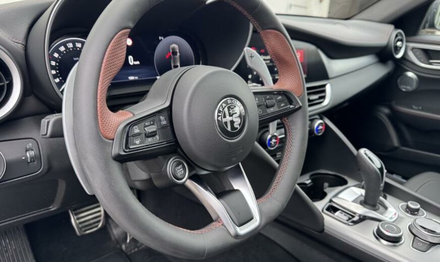achterlichten verdonkerd, vanaf 02.24, ventilatie-uitgangen achter, systeem \\\"AQS\\\", ruitesproeiers verwarmbaar, deurgrepen met verlichting, deurbekleding met omgevingsverlichting, buitenspiegels elektrisch regelbaar/dag-nacht automatisch, schakelpook leder, Alfa Connect System, dakbekleding zwart, instrumentenbord en deurbekledingen leder, zetelzijdes voor elektrisch regelbaar enkel voor Quadrifoglio , decoratie interieur aluminium, achterbank gesplitst, sierlijsten ruitkader glanzend zwart, sportpedalen aluminium, radiatorrooster zwart, GSR II A General Safety Regulation , 1995 cc 2,0 L 206 KW, AWD, sperdifferentieel LSD , actieve ophanging, radiobediening aan stuurwiel, VELGEN 7 J X 16 ALU, remklauwen \\\"Veloce\\\", dubbele uitlaat chroom, koude landen, sportbumpers voor/achter \\\"Veloce\\\", regeling rijdynamica, model 2024, mineraal 2 L