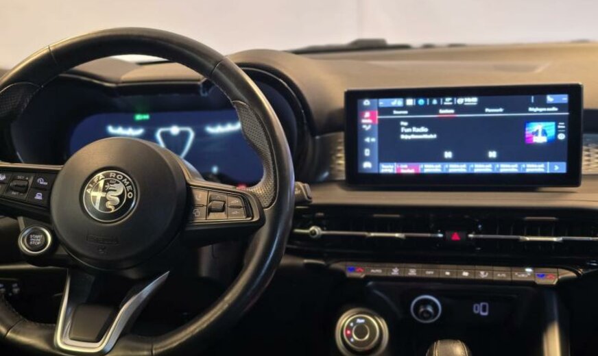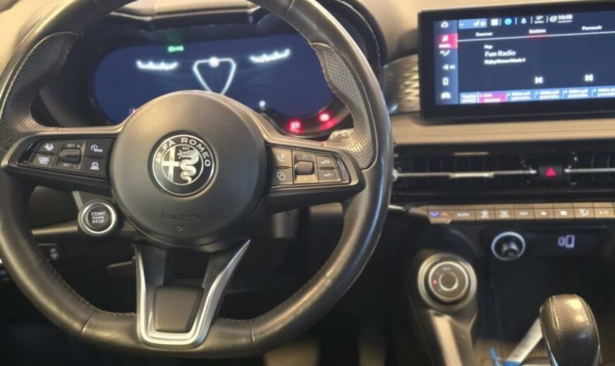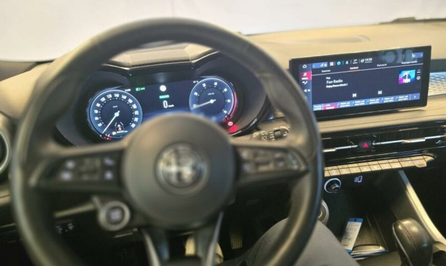 modèle 2022, système \\\"AQS\\\", chauffage supplémentaire PTC , rétroviseurs réglables électrique et jour/nuit automatique, gicleurs lave-glace chauffants, sièges av réglables manuel dans 6 directions, Sprint, conduite autonome de niveau 2, 1469 cc 1,5 L 96 KW, Alfa Connect System, Alfa Connect Services, boîte automatique DCT, roues av motrices traction , 8 J x 19 Alu, protection moyeux noir et blanc, étriers de frein peints en rouge, norme anti-pollution Euro 6D Final