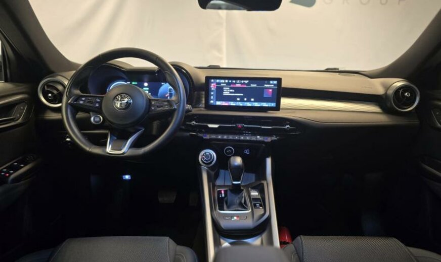 modèle 2022, système \\\"AQS\\\", chauffage supplémentaire PTC , rétroviseurs réglables électrique et jour/nuit automatique, 2 connexions USB av, gicleurs lave-glace chauffants, sièges av réglables manuel dans 6 directions, conduite autonome de niveau 2, 1469 cc 1,5 L 118 KW, Alfa Connect System, Alfa Connect Services, boîte automatique DCT, roues av motrices traction , 8 J x 19 Alu, étriers de frein peints en rouge, norme anti-pollution Euro 6D Final