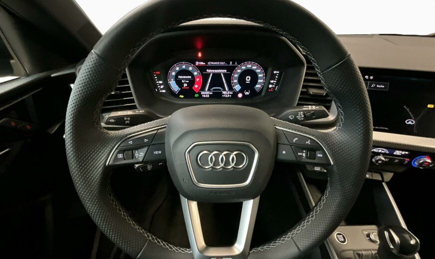 1X0EGris Flèche Nacré / Noir Mythe Métallisé\r\nTVNoir-Noir-Argent Fin/Noir-Noir/Noir/ Gris Titane\r\nPA5Pack Dynamique\r\nPCEPack d\\'assistance\r\nPX2Projecteurs à LED avec feux arrière à LED et clignotants séquentiels arrière\r\nWAIPack Business plus\r\nWQSIntérieur S line\r\nYEEA1 Sportback S line\r\n3A2Fixation de siège pour enfant i-Size côté passager avant et i-Size et Top Tether pr les sièges arrière extérieurs\r\n3ZUCeintures automatiques trois points à l\\'arrière à l\\'extérieur avec label ECE et tenseur pour UE28\r\n4UFAirbags à l\\'avant, airbag du passager avant désactivable\r\n7K1Système de contrôle de l\\'état des pneus\r\nIT3Audi connect Navigation Infotainment plus\r\nNZ4Audi connect Appel d\\'urgence Service\r\nQK2Avec caméra multifonction pour exigences NCAP\r\nQV3Réception radio numérique\r\nVL6Mesures de protection des piétons et des cyclistes étendues et anticipatrices\r\n0YMPlage de poids 12 seulement numéro de contrôle pour pose pas de prévision des besoins\r\n1XWVolant de direction cuir en style à 3 branches avec multifonction Plus\r\n2Z0Suppression du nom de modèle et de l\\'inscrlption puissance/technologie\r\n3GDPack Coffre à bagages\r\n4A3Chauffage de siège à l\\'avant\r\n4I3Clé confort, sans SAFELOCK\r\n4KFVitrage Privacy glaces assombries \r\n4ZPPack Style noir avec anneaux Audi noir\r\n6FBPack Contraste 1\r\n7W1Audi pre sense basic\r\n7X5Assistant aux manoeuvres de stationnement avec système d\\'aide au stationnement Plus\r\n9VDSystème audio Audi\r\n9ZVAudi phone box light\r\nCP3Jantes en alliage léger, en style à 5 branches, inserts plastiques en Noir, 7,5J x 17, pneus 215/45 \r\nKA2Caméra de recul\r\nQE1Pack Vide-poches\r\nQQ1Pack Éclairage d\\'ambiance\r\nUI2Audi smartphone interface