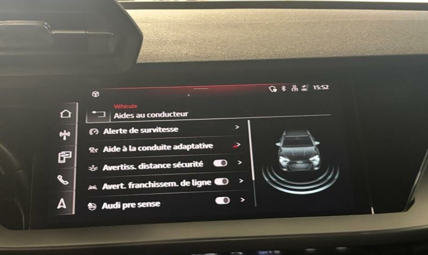 Front Assist avec freinage d\\\'urgence City, sécurité enfants électrique, pack optique noir, liquide de refroidissement R1234yf, assistant à la conduite, pare-brise avec bande de couleur, chauffage supplémentaire à air électrique, radio avec récepteur numérique, rétroviseur g avec miroir asphérique, 6 haut-parleurs, miroir de courtoisie éclairé, garniture pavillon noir, extincteur, dossiers ar séparés en 3 parties avec accoudoir central, norme anti-pollution Euro 6 AP, 999 cc 1,0 L 81 KW, 205/55 R 17 .. W, JANTES 8 J X 17 ALU, système de gonflage des pneus, Audi Phone Box, transmission hybride M-HEV, réservoir à charbon actif EVAP , Advanced line, freins av 288x15