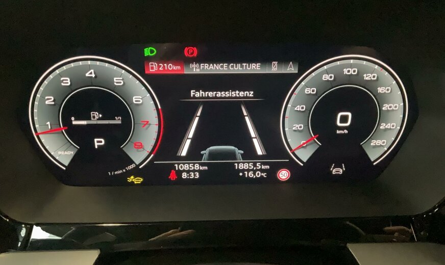 6Y6YGris Daytona effet perle\r\nAOnoir-noir-gris roche/noir-noir /noir/gris acier\r\nPWAIntérieur avec sièges normaux, combinaison cuir/simili cuir noir\r\nPYCPack de climatisation plus\r\nPYKPack d\\'assistance à la conduite et au stationnement plus\r\nWKEPack Business plus\r\n1JCSuspensions sport\r\n1Z1Augmentation du remplissage de carburant standard initial\r\n4G3Assistance aux embardées et assistance aux virages\r\n4GHVitrage calorifuge et acoustique pour pare-brise avec bande teintée Gris\r\n6I5Avertissement de sortie de voie avec assistance d\\'urgence\r\n7K1Système de surveillance de la pression des pneus\r\n7UGMMI Navigation plus avec MMI touch\r\n8J3Audi pre sense avant\r\n98RPack Infodivertissement 1 uniquement pour Audi \r\n9S9Cockpit virtuel Audi Plus\r\n9VDSystème audio Audi\r\n9ZVAudi phone box light\r\nB32Pays d\\'homologation Luxembourg\r\nC9MRoues à 5 rayons en V, 8,0J x 17, pneus 225/45 R17\r\nFP1Préparation aux fonctionnalités à la demande\r\nIT3Audi connect Navigation et Infodivertissement Plus\r\nIU4Boutique d\\'applications Audi et interface pour smartphone\r\nIW3Appel d\\'urgence et service Audi connect avec télécommande et contrôle Audi connect\r\nQK1Avec caméra multifonction\r\nQR9Reconnaissance des panneaux de signalisation par caméra\r\nQV3Diffusion audio numérique\r\n1M5Préparation de l\\'attelage de remorque\r\n3A5Ancrages pour siège enfant ISOFIX à l\\'avant, top tether et i-Size pour les sièges extérieurs arrière\r\n4H5Sécurité enfants à commande électrique\r\n5MJInsert décoratif en Aluminium Foncé \\Spektrum\\\r\n7X5Aide au stationnement avec aide au stationnement Plus\r\n8T3Régulateur de vitesse adaptatif sans limiteur de vitesse\r\nL28Plage de suspension 28 seulement numéro de contrôle pour pose pas de prévision des besoins\r\nQE1Forfait rangement et coffre à bagages\r\nQL5Verre réfléchissant la chaleur teinté foncé