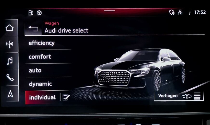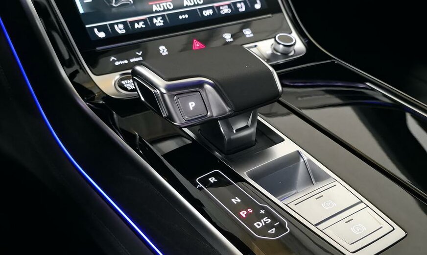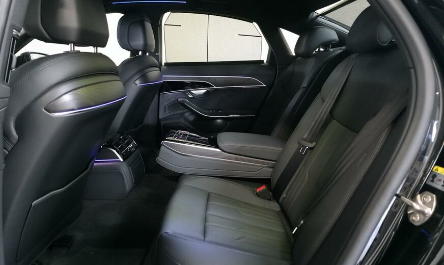 Deze Audi A8 TFSIe quattro is uitgerust met een geavanceerd PHEV hybride aandrijfsysteem en dynamische vierwielbesturing voor optimale prestaties en wendbaarheid.