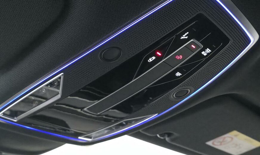 L`intérieur offre luxe et confort avec un volant multifonction à 4 branches gainé de cuir avec palettes de changement de vitesse et chauffage du volant, des sièges avant à réglage électrique avec mémoire, un store enrouleur à commande électrique pour la lunette arrière et les vitres latérales arrière, des sièges avant chauffants et ventilés et une climatisation automatique à 4 zones.