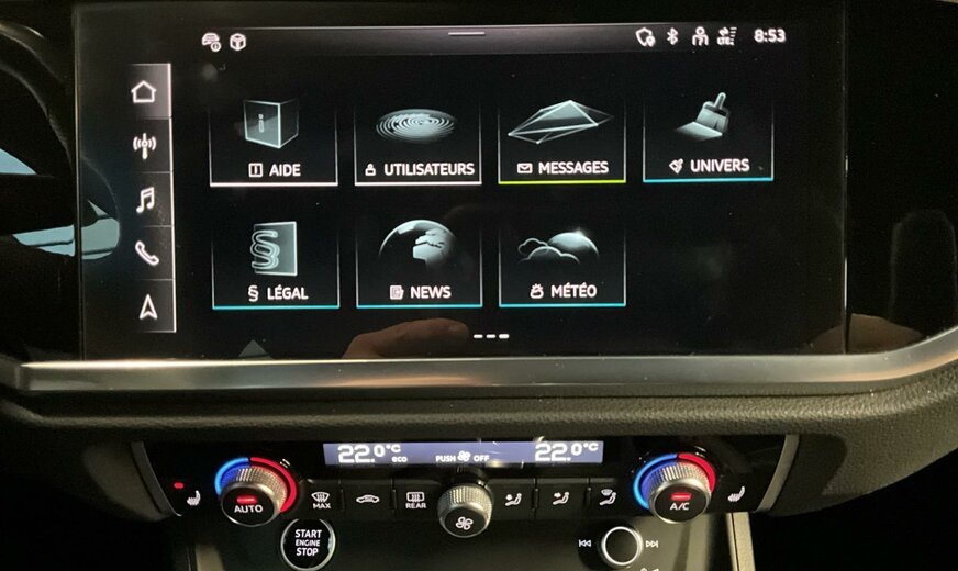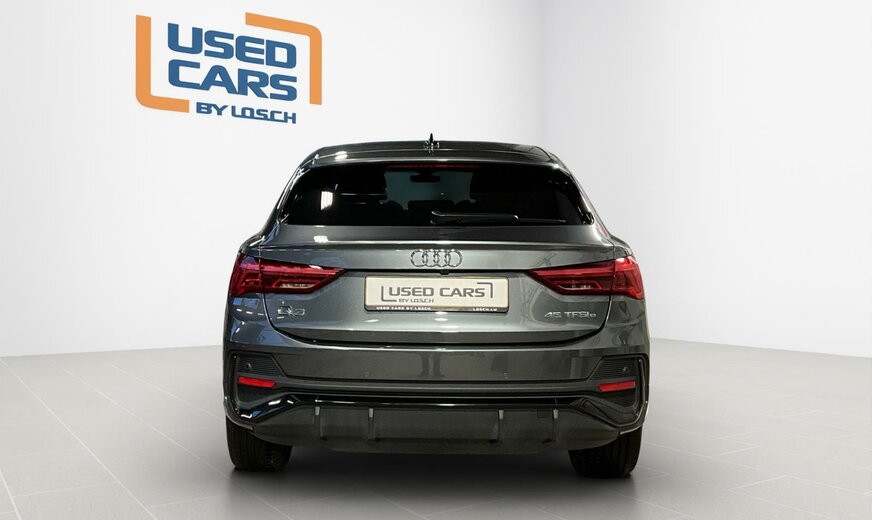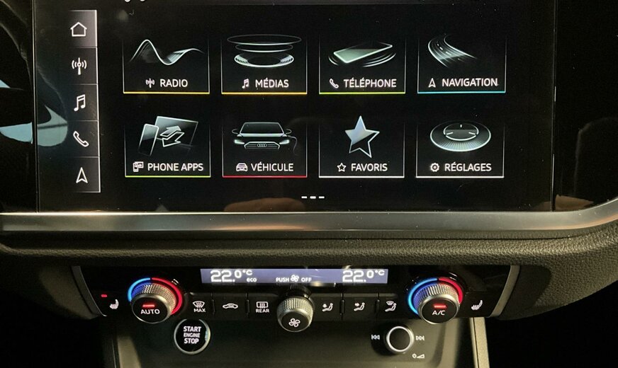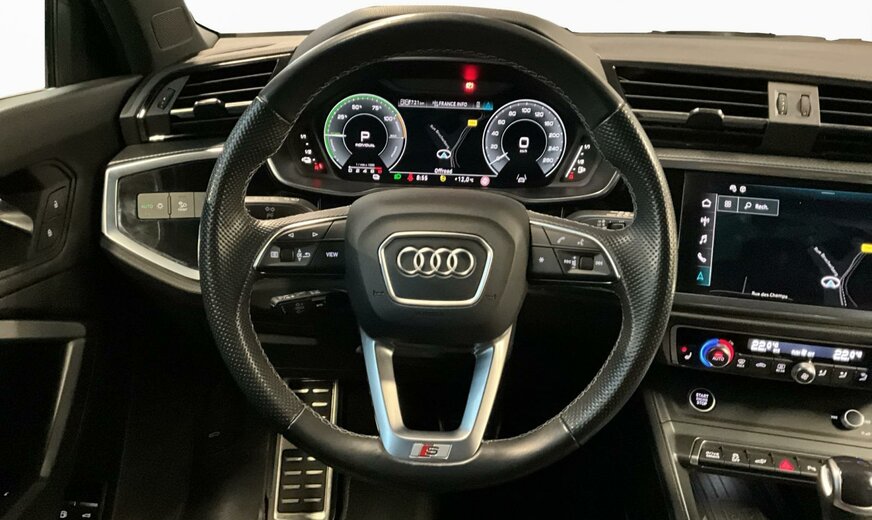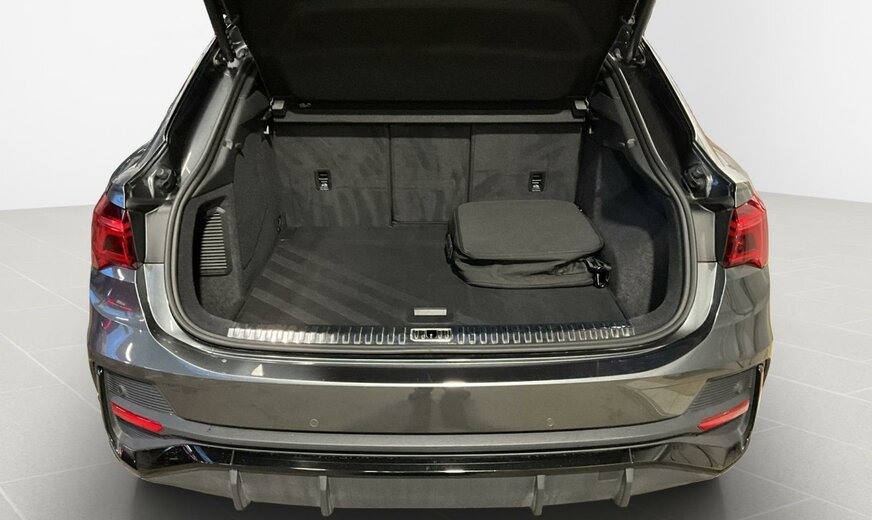 6Y6Y Gris Daytone Nacré \r\nEI Noir-Noir-Gris Roche/Noir-Noir/Noir/Noir \r\nPCE Pack Assistance \r\nPHM Projecteurs à LED et blocs de feux arrière à LED \r\nPNB MMI Navigation plus \r\nWLQ Pack Business plus \r\nWQS Intérieur S line \r\n1M5 Pré-équipement pour dispositif d\\\'attelage \r\n1XW Volant cuir en style à 3 branches avec multifonction Plus \r\n4H5 Sécurité enfants à commande électrique \r\n4I3 Clé confort \r\n4ZD Pack Style Noir \r\n5KR Banquette arrière Plus avec accoudoir central et porte-gobelets \r\n6XE Rétros ext. réglables, dégivrants et rabatt. élec., y compris abaiss. auto du rétroviseur côté passager avant \r\n7HC Accoudoir des portières en similicuir \r\n8G1 Assistant de feux de route \r\n9ZV Audi phone box light \r\nEL5 Audi connect Remote Control \r\nKA2 Caméra de recul \r\nN1P Combinaison cuir/similicuir mono.pur550 S line \r\nNW1 Système de chargement e-tron compact \r\nQL5 Vitrage Privacy glaces assombries \r\nQQ1 Pack Éclairage ambiance \r\nUI2 Audi smartphone interface