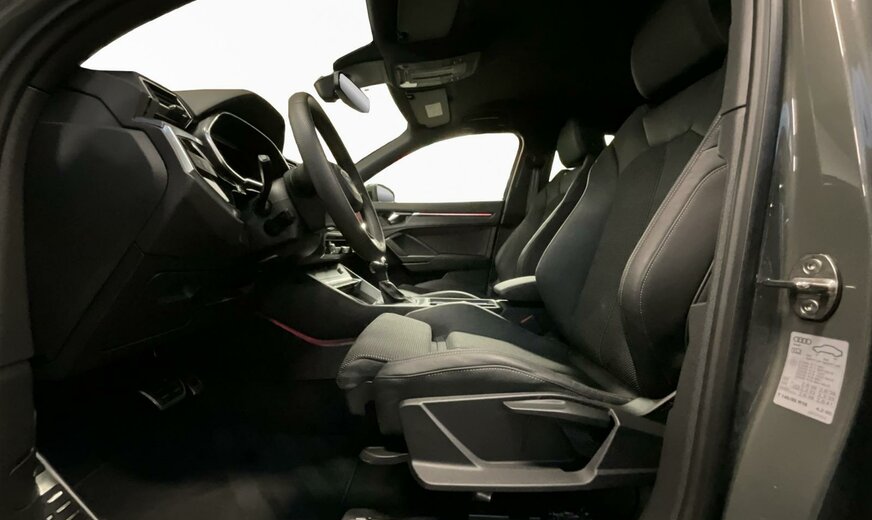 Z7Z7 Gris Chronos Métallisé \r\nEI Noir-Noir-Gris Roche/Noir-Noir/Noir/Noir \r\nPCE Pack Assistance \r\nPNB MMI Navigation plus \r\nPX2 Phares à LED avec feux à LED arrière et clignotants dynamiques à l\\\'arrière \r\nWDQ Pack Premium \r\nWQS Intérieur S line \r\n1JC Trains roulants sport \r\n1T3 Trousse de secours avec triangle de présignalisation \r\n4UF Airbags à l\\\'avant, airbag du passager avant désactivable \r\n6E3 Accoudoir central confort à l\\\'avant \r\n7K1 Système de contrôle de l\\\'état des pneus \r\n7W1 Audi pre sense basic \r\nC3Q Jantes, style S à 5 branches en V, 7,0J x 18, pneus 235/55 R18 \r\nEL5 Audi connect Remote Control \r\nUH2 Hold assist \r\n1M5 Pré-équipement pour dispositif d\\\'attelage \r\n4H5 Sécurité enfants à commande électrique \r\n4ZD Pack Style Noir \r\n5KR Banquette arrière Plus avec accoudoir central et porte-gobelets \r\n6XE Rétros ext. réglables, dégivrants et rabatt. élec., y compris abaiss. auto du rétroviseur côté passager avant \r\n7HC Accoudoir des portières en similicuir \r\n8G1 Assistant de feux de route \r\n9S9 Audi virtual cockpit plus 12,3\\\" \r\n9VD Audi sound system 10 haut-parleurs+1 subwoofer, 180W \r\nKA2 Caméra de recul \r\nN7V Combinaison tissu Sprint/ similicuir mono.pur550 S line \r\nQJ1 Style aluminium à l\\\'intérieur \r\nQL5 Vitrage Privacy glaces assombries \r\nQQ2 Pack Éclairage de contour/ambiance, multicolore