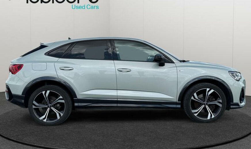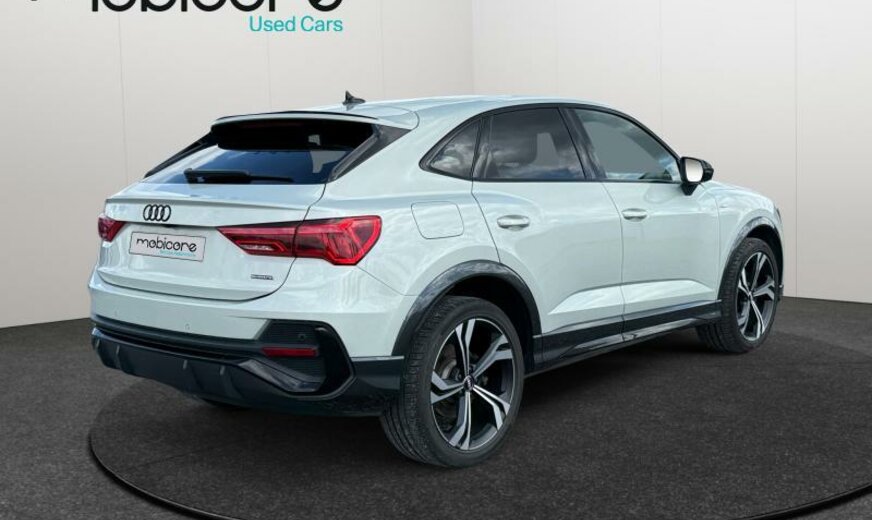 rétroviseur g avec miroir asphérique, rétroviseur d convexe, freins av 340x30 / ar 310x22, hayon à fermeture assistée, boulons de roue avec antivol, chauffage à l\\'arrêt, système lave-phares, caméras périphériques, sièges av Sport confort, lèvre de becquet pavillon, garniture pavillon noir, pack vide-poches, accoudoir central ar, alternateur 140 A, 1984 cc 2,0 L 169 KW, liquide de refroidissement R1234YF, réservoir à charbon actif EVAP , Audi Drive Select, suspension sport, assistant de changement de voie, caméra frontale pour assistant à la conduite, 8,5 J x 20 Alu, roue de secours temporaire, Audi Phone Box, Online services, systèmes de sécurité étendu Pre Sense Basic , pack optique noir brillant avec monogramme noir, pare-chocs/écrans passages de roue/élargisseurs bas de caisse \\S-Line