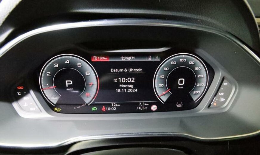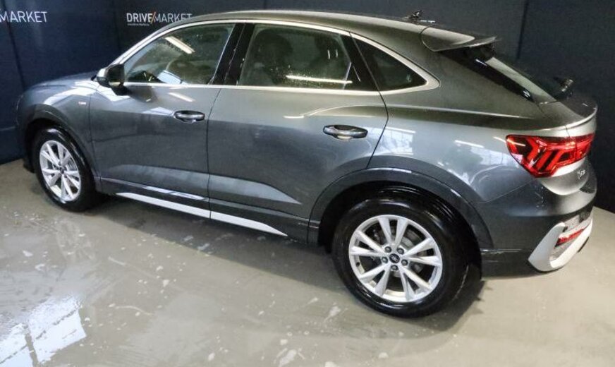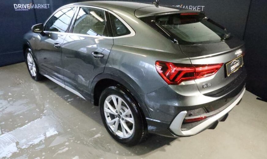 rétroviseur g avec miroir asphérique, rétroviseur d convexe, freins av 312x25 / ar 300x12, hayon à fermeture assistée, radio avec récepteur numérique, sièges av Sport confort, garniture pavillon noir, accoudoir central ar, alternateur 140 A, 1498 cc 1,5 L 110 KW, liquide de refroidissement R1234YF, réservoir à charbon actif EVAP , Audi Drive Select, suspension sport, caméra frontale pour assistant à la conduite, 7 J x 18 Alu, Online services, Pan-European e-Call, systèmes de sécurité étendu Pre Sense Basic , pack optique Aluminium, pare-chocs/écrans passages de roue/élargisseurs bas de caisse \\S-Line\\, 2 couches nacrée