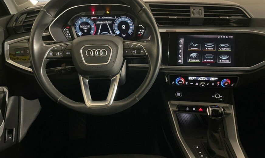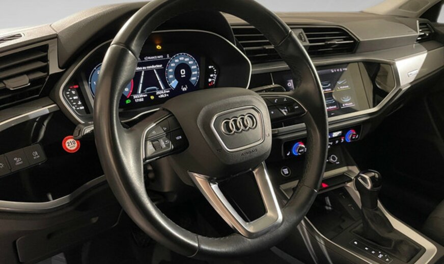Audi Q3 Informations générales Marque: Audi Modèle: Q3 Type: 2.0 TDI ADVANCED Forme de carrosserie: Crossover Année du modèle: 2022 Informations techniques Commande: Traction avant Réservoir de carburant: 60 litres Poids à vide: 1.655 kg Environnement et consommation Consommation moyenne de carburant: 4,7 l/100km Ãmission de CO2 (WLTP): 133 g/km Label énergétique: A Garantie Garantie: Autopolis Occasion (â¬0) Garantie: 12 mois Paquets de livraison Emballage de livraison inclus: Autopolis Occasion (â¬0) Cet emballage de livraison contient: Autopolis Occasion (â¬0) (12 mois de garantie) Identification Numéro de référence: 67248 Numéro d'immatriculation: 67248 Numéro de production: 67248 AUDI Q3 ADVANCED 150CV Moteur: 2.0L TDI avec 4 cylindres en ligne Transmission : AUTOMATIQUE Verrouillage centralisé à distance Détection des panneaux routiers Régulateur de vitesse / distance Assistant au freinage d\'urgence Capteur à l\'arrière et à l\'avant du véhicule Park assist Sièges avants chauffants Bluetooth Dispositifs mains libres Volant multifonctions Climatisation auto Start / Stop automatique Isofix Véhicule non fumeur Nous parlons français We speak english Wir sprechen Deutsch Noi parlamo Italiano Falamos Português Govorimo Srpsko Hrvatski Sous réserve d\'erreur dans l\'annonce Reprise de votre véhicule possible Financement possible sur place: financement Crédit Classique ou Crédit Ballon Eco taxe France non inclus Bienvenue chez Autopolis Demandez dès maintenant une offre de reprise - sans aucun engagement - ou planifiez un essai du véhicule d'occasion de votre choix ! Nos conseillers commerciaux sont à votre disposition en ligne, par téléphone, ou directement en showroom. La liste des équipements a été établie avec le plus grand soin. Cependant, il se peut que certains équipements présents sur le véhicule ne soient pas mentionnés, ou que certains éléments indiqués ne soient finalement pas disponibles. Nous vous recommandons de vérifier les équipements importants pour vous avant de conclure votre achat. Cette liste est donnée à titre indicatif.Â