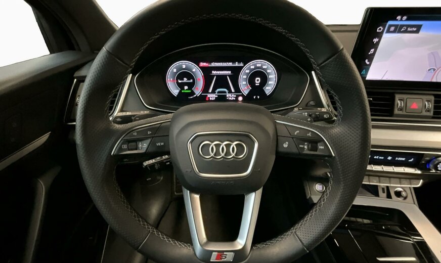 6Y6Y Gris Daytona Nacré \r\nEI Noir-Noir-Gris Roche/Noir-Noir/Noir/Noir \r\nPCN Pack Assistance Tour \r\nPCZ Pack Assistance en ville avec pack Assistance au stationnement \r\nPIH Pack Sécurité enfants \r\nPXC Projecteurs Matrix LED et blocs de feux arrière à LED et lave-projecteurs \r\nWAI Pack Premium \r\nWQS Intérieur S line \r\n1BV Trains roulants sport \r\n1D4 Dispositif d\\\'attelage \r\n1XP Volant de direction cuir en style à 3 branches avec multifonction Plus et chauffage de volant \r\n2Z0 Suppression du nom de modèle et de l\\\'inscrlption puissance/technologie \r\n3FU Toit coulissant panoramique \r\n3NS Banquette arrière Plus \r\n3PB Siège du conducteur à réglage électrique \r\n3S2 Barres de toit Noir avec détection de galerie porte-bagages \r\n4A3 Chauffage de siège à l\\\'avant \r\n4I3 Clé confort, sans SAFELOCK \r\n4L6 Rétroviseur intérieur à réglage jour/nuit automatique \r\n4ZP Pack Style Noir Plus \r\n5TG Inserts décoratifs en aluminium Mat Brossé \r\n6XK Rétroviseurs extérieurs réglables, dégivrants et rabattables électriq., réglage jour/nuit autom. des 2 côtés \r\n7P1 Appui lombaire 4 voies pour les sièges avant \r\n7UG MMI Navigation plus avec MMI touch \r\n9AQ Climatiseur automatique confort 3 zones \r\n9JE Interface de chargement USB pour les passagers arrière \r\n9S9 Audi virtual cockpit plus \r\n9VD Audi sound system \r\nIT3 Audi connect Navigation Infotainment \r\nIU1 Audi smartphone interface \r\nN5K Combinaison microfibre Dinamica Fréquence/cuir avec estampage S \r\nQE1 Pack Vide-poches et coffre à bagages \r\nQL5 Vitrage Privacy glaces assombries \r\nQQ2 Pack Éclairage d\\\'ambiance Plus \r\nUH2 Hold assist \r\nV71 Jantes en alliage léger, style 5 branc. segmentées, Gris Graphite, tourn. bril., 8,0J x 20, pneus 255/45 R20