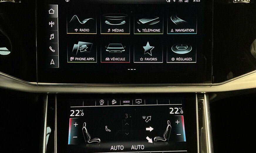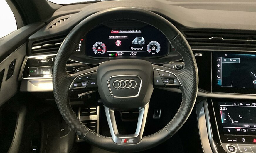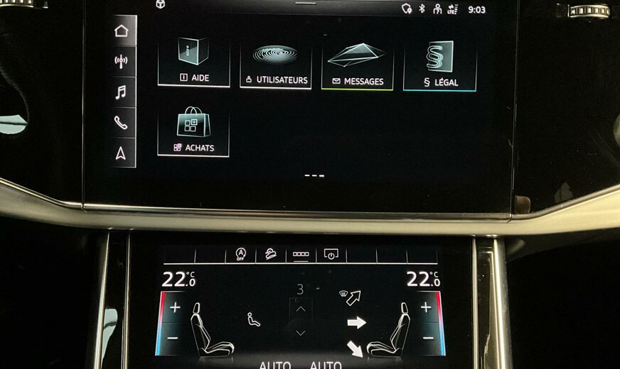 S1S1Bleu Galaxie métallisé\r\nEINoir-Noir-Gris Roche/Noir-Noir/Noir/Noir\r\nPG3Clé confort avec dispositif de sécurité Safe et alarme antivol\r\nPV3Sièges avant réglables électriquement y compris fonction mémoire pour le siège du conducteur\r\nWASPack Confort\r\nWQSS line pack sport\r\nKA2Caméra de recul\r\nQR9Repérage des panneaux de signalisation détectée par caméra\r\n0M5Réservoir à carburant 85 litres \r\n0VFDocumentation de bord en anglais\r\n1BKadaptive air suspension\r\n1D3Dispositif d\\'attelage\r\n1G1Roue de secours gonflable\r\n1S1Outillage de bord et cric\r\n1XPVolant cuir sport en style à 3 branches avec multifonction plus et palettes y compris chauffage de volant\r\n2Z7Suppression de l\\'inscrlption technologie\r\n4A3Sièges chauffants à l\\'avant\r\n6XLRétroviseur extérieur dégivrant, à réglage jour/nuit automatique, rabattable électr. avec fonction mémoire\r\n8G1Assistant de feux de route\r\n8X1Lave-phares\r\nIU1Audi smartphone interface\r\nN7KAlcantara perforé/Cuir avec estampage S line sur les dossiers de sièges avant\r\nQL5Vitrage Privacy glaces assombries \r\nQQ1Pack éclairage