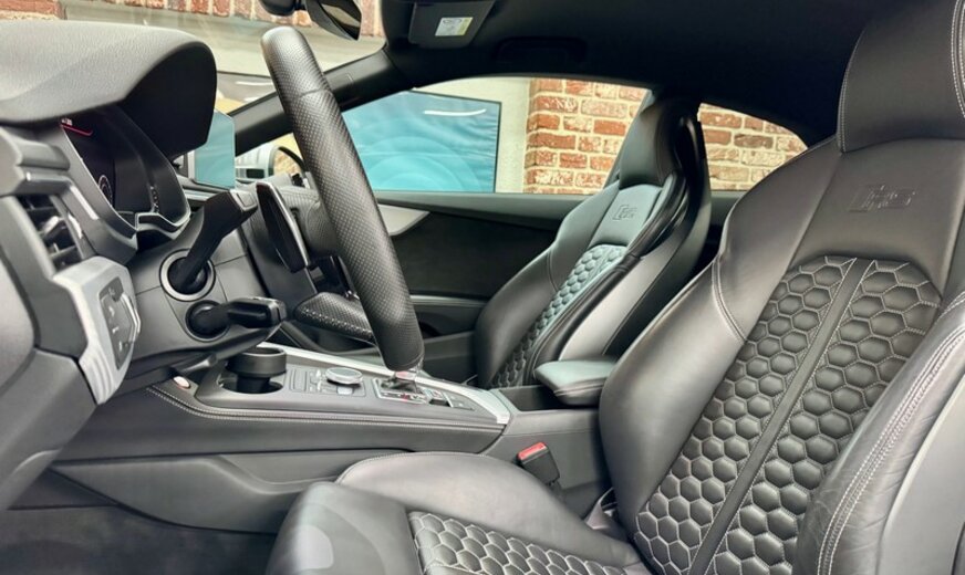 Version RS / 4 roues motrices / Non Fumeur / 4x4 / Garantie Moteur-Boite-Pont / Châssis SPORT / Navigation / Cuir / Phares de jour LED / Phares LED / Virtual Cockpit / Boite auto / Clima auto / Boite auto Tiptronic / Quattro / Régulateur de Vitesse Adaptif / Parktronic arr / Parktronic av / Caméra de recul / Caméra Avant / Jantes alu 20 / Alarme / Sièges chauffants av / Sièges Electriques / Alerte De Collision / Alerte Déviation de Trajectoire / Assistant de trajectoire / Assistant de démarrage en côte / Assistant Embouteillages Autoroute / Sièges Sport / Sièges Mémoire / Audi Drive Select / Auto-Hold / Limitateur de vitesse / Isofix / Radio CD / Commande Vocal / Radio digital (DAB+) / Bluetooth / Recharge par Induction / Rétroviseurs angle mort / Rétroviseurs rabattables / Démarrage sans clef / Etriers de Freins Noirs / 2 Portes / ABS / Accoudoir / Anticarjacking / Appuie-tete arr / Audi MMI / Capteur pluie / Capteur lumière / Carnet d'entretien électronique / Commande à distance / Connexion SD / Controle de Stabilité (ESC) / Direction assistée / ESP / Frein à main electrique / Ordinateur de Bord / Palettes au Volant / Peinture mét / Rétroviseurs chauffants / Rétroviseurs electriques / Sélecteur de mode de conduite / Détection Fatigue / Sièges arr. rab. 2/3 / Surveillance pression pneus / Suspension Sport / Verrouillage Centralisé / Volant Multifonctions / Volant Sport / Windshot / Connexion USB / Vitres électriques / Volant Cuir / 4 portes / Airbags / Appel SOS / Audi Pre Sense / Pot d'échappement Sport / Rétroviseurs anti-éblouissement / Spoiler arrière / Température extérieure / / /