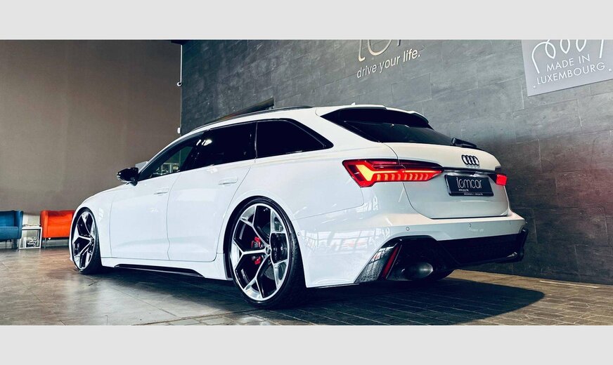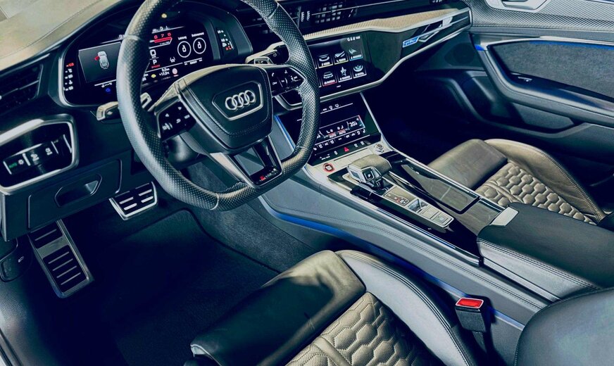 RS Dynamic Plus Package, Black Optic Plus Package, Carbon Decorative Inserts, Assistance Plus Package avec Remote Parking Assistant Plus, Échappement Sport RS, RS Ceramic Brake System, Suspension pneumatique, Distance Warning, Lane Departure Warning, Audi Pre Sense avec Turn-Off Assist & Swerve Assist, Side Assist, Traffic Light Information, Hazard Alerts, Background Lighting, Door Soft Close, Audi Drive Select, Auto Start & Stop, Keyless-Go avec Audi Connect Key, Galerie de toit, Toit ouvrant panoramique avec store électrique, Attache-remorque rétractable, Hayon électrique Easy Open & Close, Trappe à ski, Park Assist, Parktronic avant et arrière avec caméra 360° incl. Manoeuvre Assist & Rear Cross-Traffic Assist, Phares Matrix LED & Audi Laser Light, High Beam Assist, Capteur de pluie, Rétroviseurs électriques rabattables, Sièges Sport RS électriques à mémoire chauffants et ventilés en cuir, Sièges arrière chauffants, Head-Up Display, Audi Virtual Cockpit Plus avec RS-Layout, Volant multifonctions à réglage électrique et chauffant en cuir, Palettes au volant, Adaptive Cruise Control, Bluetooth, Navigation, Phone Apps, Phone Box, Radio touch DAB / USB-C / BT audio / WLan, Bang & Olufsen Premium 3D Sound System, Isofix+