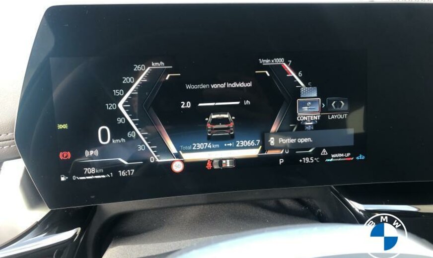 01AG Grotere brandstoftank\r\n01DF Emissienorm EU6 \r\n01EE BMW LM-velg V-spaak 867 STD\r\n0230 EU-specifieke extra werkzaamheden\r\n02PA Wielbout met slot\r\n02TE Automaat met schakelpaddels\r\n02VB Bandenspanningsweergave\r\n02VC Bandenreparatieset\r\n0302 Alarmsysteem\r\n0320 Ontfall, type-aanduiding\r\n0322 Comforttoegangssysteem\r\n03MC Individual dakreling hooggl. Shadow Line\r\n0430 Binnen-/buitenspiegel, aut. dimmend\r\n0431 Binnenspiegel, automatisch dimmend\r\n0478 Kinderstoeltjebevestiging\r\n0494 Stoelverwarming bestuurder/passagier\r\n04AT Interieurstrips hoogglanzend zwart\r\n04NW LUXURY DASHBOARD\r\n0548 Kilometersnelheidsmeter\r\n0552 Adaptieve LED-koplamp\r\n05AC Grootlichtassistent\r\n05AS Driving Assistant\r\n05AV Active Guard\r\n05DM Parkeerhulpsysteem\r\n0654 DAB-Tuner voorbereid voor DAB+ \r\n06AE Teleservices\r\n06AF Wettelijke noodoproep\r\n06AK Connected Drive Services\r\n06NX Storage tray wireless Charging\r\n0710 Lederen M-stuurwiel\r\n0760 Hoogglans Shadow line\r\n07EV Optiepakket\r\n07HW X Line\r\n0868 Taalversie Nederlands\r\n0886 Boorddocumentatie Nederlands\r\n08SM Chassisnummer van buitenaf zichtbaar\r\n08TF Actieve voetgangersbescherming\r\n09QV Voorbereiding Driving Assistant Plus\r\n09T5 Specifieke accessoires X\r\nA070 AGM-accu 70 Ah