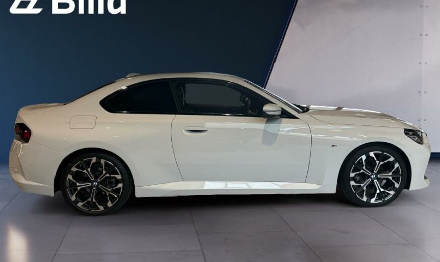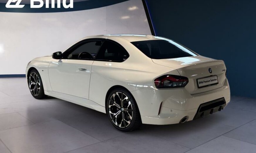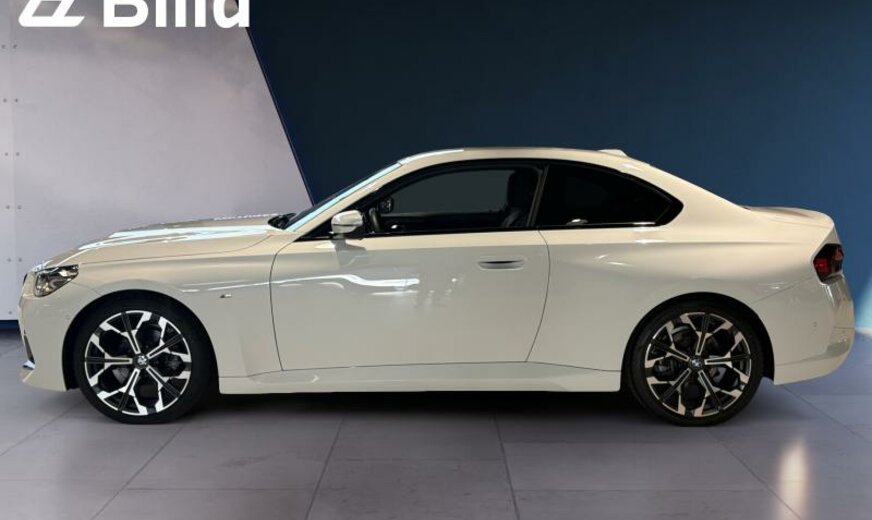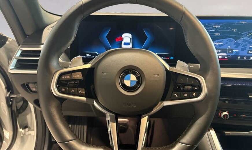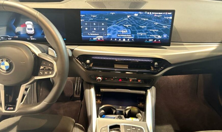 monogrammes M éclairés, mesures CO2 étendues, System Blow-by-Heizer, Teleservices, rétroviseurs ext/int jour/nuit automatique et rabattables, Personal eSIM, phares LED adaptatifs/feux ar avec technologie Laser, protection des piétons active, triangle de secours, appuis-tête ar rabattables, pack de rangement, garnissage pavillon anthracite, Driving Assistant, 1998 cc 2,0 L 115 KW, direction sport variable avec Servotronic, avant 8 J x 19 / arrière 8,5 J x 19 Alu frozen midnight, cadres de vitres Shadow Line brillant, suspension M Sport, encarts intérieurs aluminium \\Feinschliff\\, pack aérodynamique M, spécifique Europe