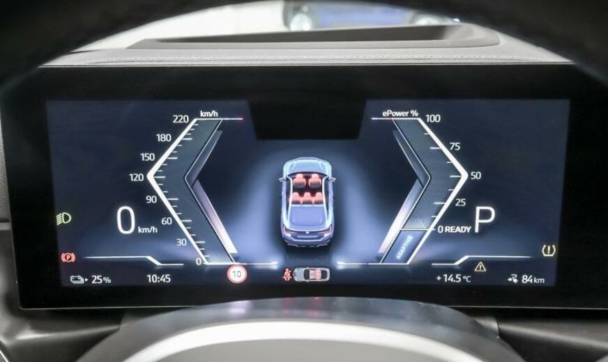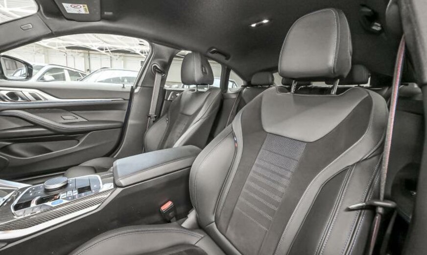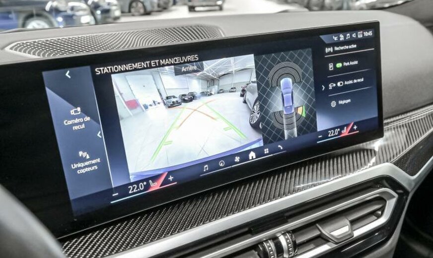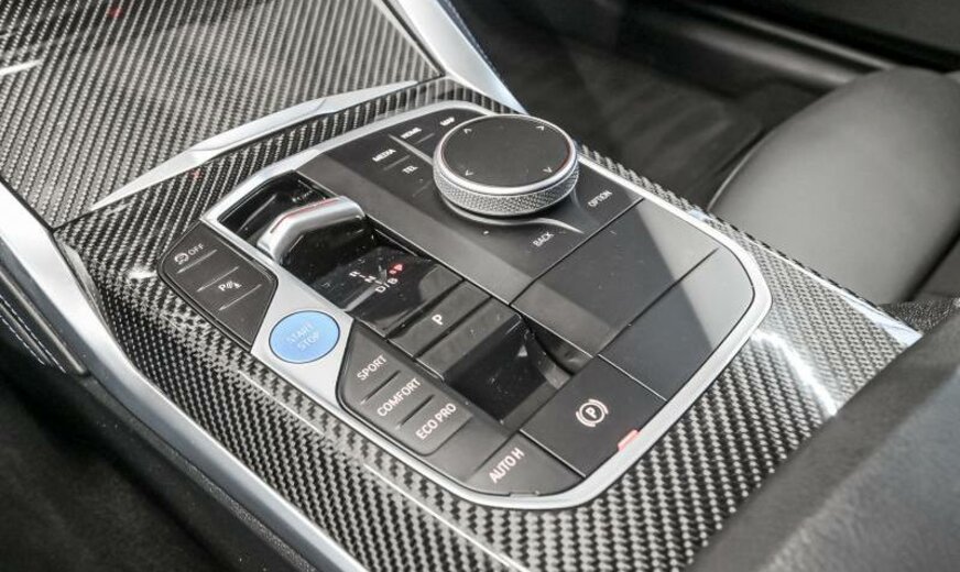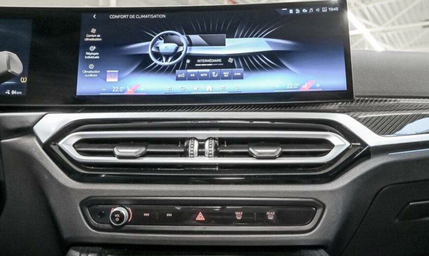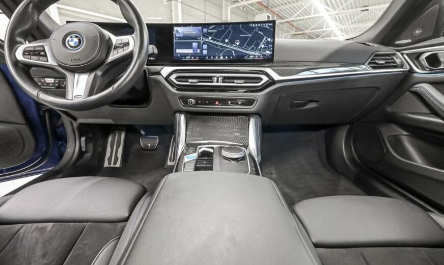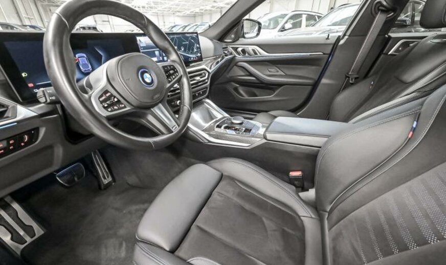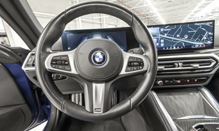 Teleservices, rétroviseurs ext/int jour/nuit automatique et rabattables, BMW Iconic Sounds Electric, brillant Shadow Line étendu, phares Shadow Line, protection des piétons active, siège conducteur avec dossier réglable en largeur, ceintures de sécurité M, pack de rangement, protection acoustique des piétons, garnissage pavillon anthracite, câble de charge Professional, Driving Assistant, becquet ar M, électrique 250 kW, direction sport variable avec Servotronic, suspension adaptative M, freins M Sport rouge brillant, avant 8,5 J x 19 / arrière 9 J x 19 Alu jet black unie, tableau de bord \\\"Sensatec\\\", cadres de vitres Shadow Line brillant, encarts intérieurs en fibre de carbone, encarts décoratifs Frozen Grey, pack aérodynamique M, spécifique Europe