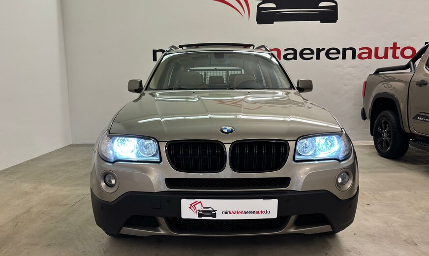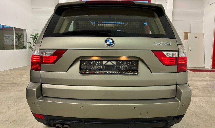 BMW X3 VERKAUF IM KUNDENAUFTRAG AUTO STEHT IN BERTRANGE !!! Sonderausstattung: Advantage-Paket, Audio-Navigationssystem Professional, CD-Wechsler, Innenausstattung: Interieurleisten Edelholz, Innenspiegel mit Abblendautomatik, Klimaautomatik, Lenkrad heizbar, Metallic-Lackierung, Multifunktion für Lenkrad, Sitzbezug / Polsterung: Leder Nevada, Sportsitze vorn Weitere Ausstattung: Airbag Fahrer-/Beifahrerseite, Aktive Kopfstützen, AuÃenspiegel elektr. verstell- und heizbar, AuÃentemperaturanzeige, Blinkleuchten WeiÃ, Bordcomputer, Check-Control-System, Dachspoiler mit 3. Bremsleuchte, Drehzahlmesser, EfficientDynamics-Paket, Exterieurumfänge Wagenfarbe, Fahrassistenz-System: Bergabfahrkontrolle (HDC), Fensterheber elektrisch vorn + hinten, Getränkehalter hinten, Getränkehalter vorn und hinten, Isofix-Aufnahmen für Kindersitz, Karosserie: 5-türig, Kopf-Airbag-System hinten, Kopf-Airbag-System vorn, Kopfstützen hinten, Lenksäule (Lenkrad) mechan. verstellbar, Leuchtweitenregelung, LM-Felgen, Motor 3,0 Ltr. - 160 kW Turbodiesel KAT, Radstand 2795 mm, Reserverad als Notrad, Rücksitzlehne geteilt/klappbar, Scheibenwaschdüsen heizbar, Seitenairbag vorn, Serien-Fahrwerk, Sitze vorn mechanisch verstellbar, Sperrdifferential, Verglasung grün getönt , Innenspiegel automatisch abblendend, Regensensor