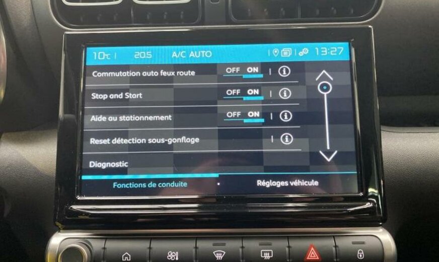 avertisseur de somnolence, équipement extérieur noir, 2-ème période 2022/avant 2-ème période 2024, système audio Connect Nav numérique, radio avec commande à distance dans le haut du volant VCI , poignées de porte extérieures peintes, arbre d\\\'équilibrage, combiné instruments LCD et caractères chromés, lève-vitre conducteur avec émetteur à impulsions, lève-vitre passager avec commande à impulsions, coiffes des rétroviseurs peintes, rétroviseurs chauffants, fonctionnalité \\\"Mirror Screen\\\", allumage automatique des phares, marquage fluorescent, siège conducteur réglable en hauteur, ceinture de sécurité ar mil à 3 points, lecteur de panneaux de signalisation, ceintures de sécurité av et 3 ceintures ar avec avertisseur d\\\'oubli, condenseur d\\\'une surface de 19.2 dm² et d\\\'une épaisseur de 12 mm, radiateur de 21 dm² et de 18 mm d\\\'épaisseur, 1199 cc 1,2 L 81 KW HNP EB2ADT, disques de frein av 283 mm, capteur d\\\'angle de rotation, 6,5 J x 16 Alu Diamond, ventilateur électrique 140 W sans déflecteur d\\\'air , suspension de type 2, barre stabilisatrice du 22 mm, ESP réglable, galerie de pavillon, moulures de protection latérale noir mat, pare-chocs av/ar avec enjoliveur Alu, phares avec cerclage décoratif teinté, Facelift