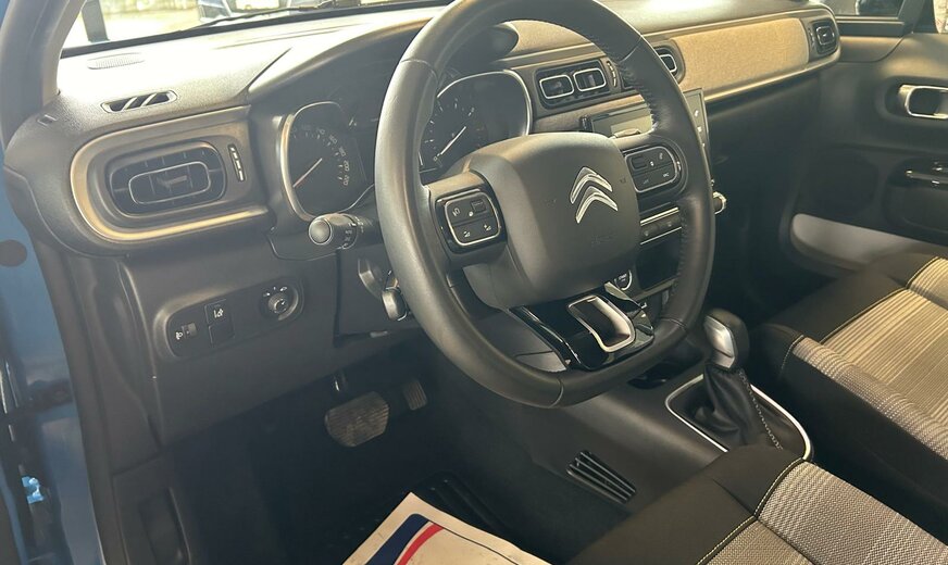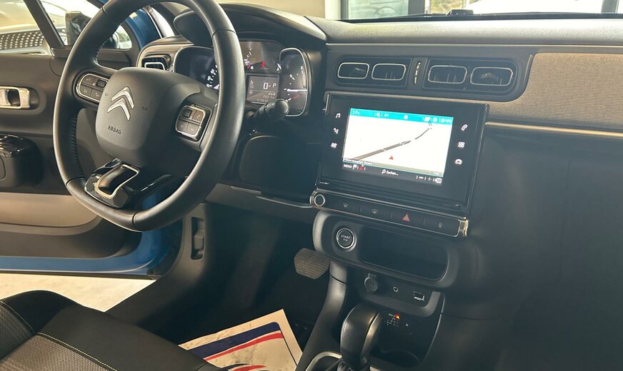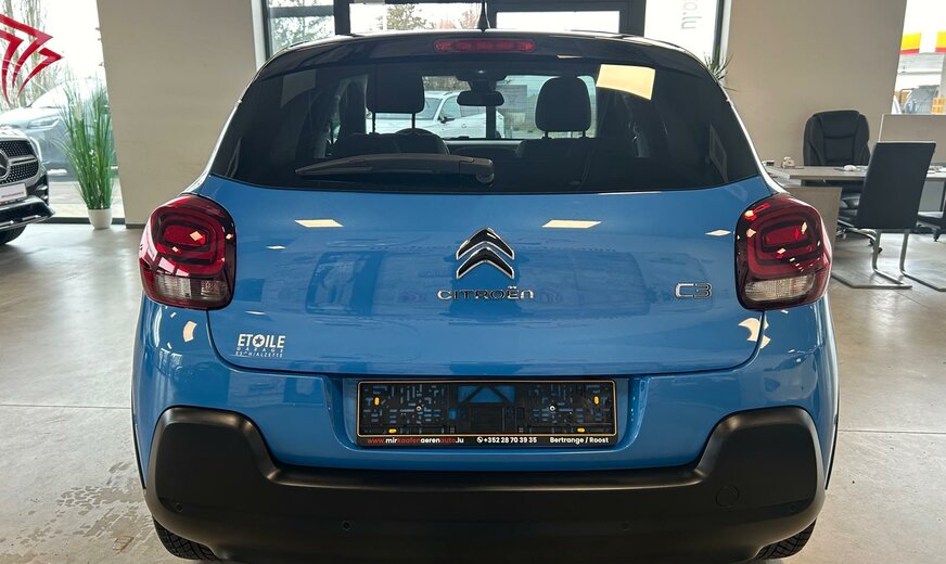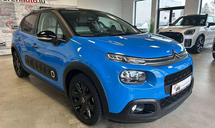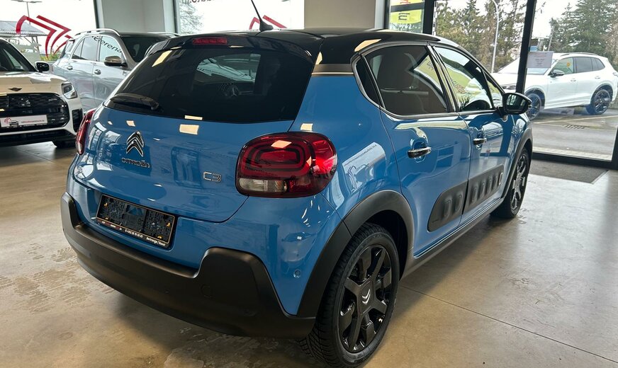 Citroen C3 Sonderausstattung: Einparkhilfe hinten inkl. Rückfahrkamera, Metallic-Lackierung, Sicherheits-Paket, Sitzheizung vorn, Style-Paket 17 Weitere Ausstattung: Airbag Beifahrerseite, Airbag Beifahrerseite abschaltbar, Airbag Fahrerseite, AuÃenspiegel elektr. verstell-, heiz- und anklappbar, Connecting-Box, Dach andersfarbig, Fahrassistenz-System: Notbrems-Assistent, Innenspiegel mit Abblendautomatik, Isofix-Aufnahmen für Kindersitz an Rücksitz, Karosserie: 5-türig, Klimaautomatik, Kopf-Airbag-System, Kopf-Airbag-System hinten, Kotflügelverbreiterung, Motor 1,2 Ltr. - 81 kW 12V e-THP / PureTech, Rücksitzbank klappbar 1/3-2/3, Schadstoffarm nach Abgasnorm Euro 6 (PSA Euro 6.1), Schwellerverbreiterung, Seitenairbag vorn, Sitz vorn links höhenverstellbar, Sitzbezug / Polsterung: Stoff, Stop-Start-Anlage, Style-Paket Schwarz, Warnanlage für Sicherheitsgurte