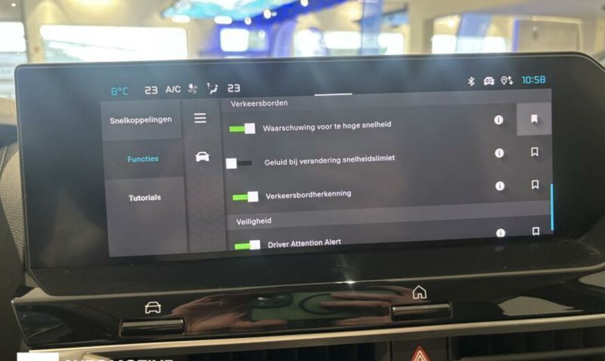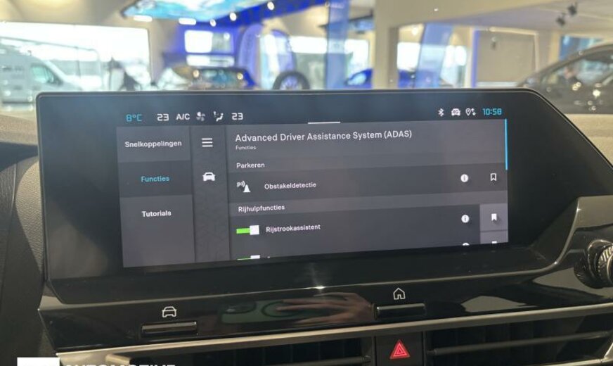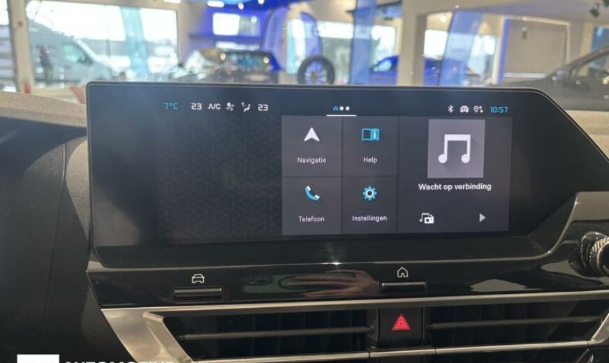 vanaf 04.24 17339, 3e ruit 2022/voor 3e ruit 2024, 4e ruit 2023/voor 4e ruit 2025, sierlijsten voorruit aan de voorstijlen, condensor 20 dm² en 12 mm dikte, radio kleur analoog met DAB, 6 luidsprekers, Visio Park 1 camera 180 graden , akoestische isolatie verbeterd, stuurwiel leder -spaltleder-, decoratie instrumentenbord zwart chroom, hoge middenconsole, elektrische ventilator 140 W met korte verdeler, beeldscherm 10 \\\" HD, luchtgeleider voor onder geoptimaliseert, 1199 cc 1,2 L 96 KW HNS/HNT EB2ADTS, schakelbediening aan stuurwiel, handrem elektrisch, schokdemper achter met hydraulische aanslag dubbel, remschijven voor 302 mm, stabilisator voor 22 mm, ophanging kentype 4, 195/60 R 18 .. H, 6,5 J x 18 Alu \\\"Aeroblade\\\", 6,5 J x 18 Alu \\\"Aeroblade Dark\\\", alternator 150 A UHEA, batterij 70 Ah EFBC, eindstuk uitlaatsysteem links en rechts, sierlijst achterklep zwart glanzend, eindstuk uitlaat chroom, bumper achter 2-delig, haaienvin antenne, kofferbodem mobiel, stootlijsten deuren voor met sierlijsten zwart Onyx