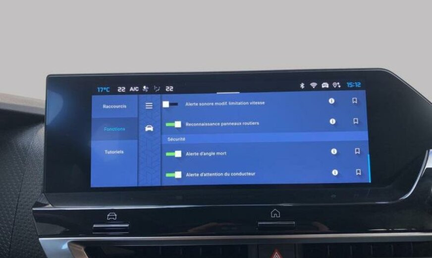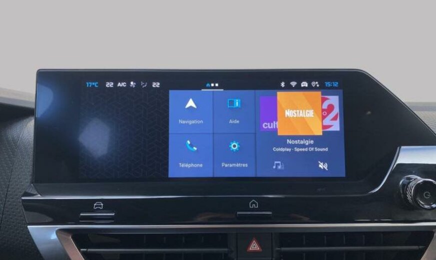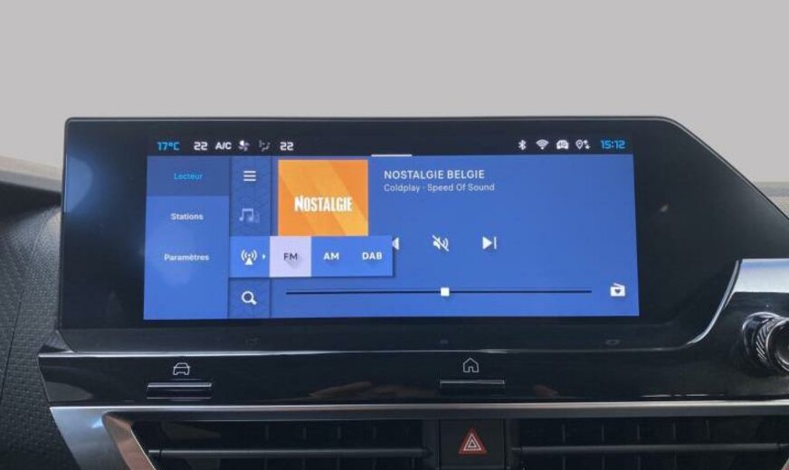 3-ème période 2022/avant 3-ème période 2024, 4-ème période 2023/avant 4-ème période 2025, enjoliveurs pare-brise au niveau des montants av, condenseur de 20 dm² et de 12 mm d\\\'épaisseur, radio couleur analogique avec DAB, 8 haut-parleurs, chargement smartphone, insonorisation/acoustique améliorée, pares-soleil éclairés, console pavillon avec 3 LED, console centrale haute, ventilateur électrique 140 W avec buses courtes, enjoliveurs vitres de porte chromés, moniteur 10\\\" HD, déflecteur d\\\'air av inférieur optimalisé, 1199 cc 1,2 L 96 KW HNS/HNT EB2ADTS, commande de vitesse au volant, frein à main électrique, amortisseurs ar avec double butée hydraulique, disques de frein av 302 mm, barre stabilisatrice av 22 mm, suspension de type 4, 195/60 R 18..H, 6,5 J x 18 Alu \\\"Aeroblade Diamond\\\", alternateur 150 A UHEA, batterie 70 Ah EFBC, embout échappement g/d, enjoliveur du hayon noir brillant, embout échappement chromé, pare-chocs ar en 2 parties, antenne aileron de requin, plancher de coffre mobile, moulures portes av avec écran enjoliveur Artense Grey, 3 couches nacrée