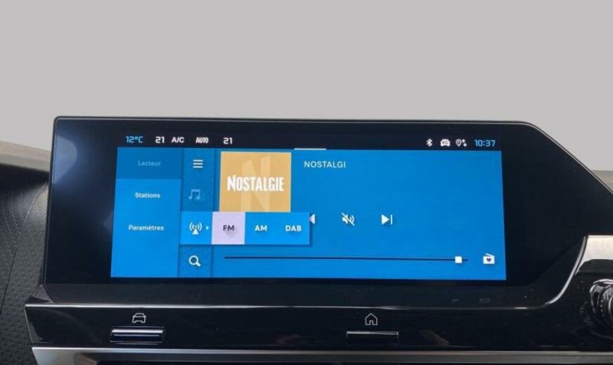 3-ème période 2022/avant 3-ème période 2024, 4-ème période 2023/avant 4-ème période 2025, enjoliveurs pare-brise au niveau des montants av, condenseur de 20 dm² et de 12 mm d\\\'épaisseur, radio couleur analogique avec DAB, 8 haut-parleurs, chargement smartphone, insonorisation/acoustique améliorée, pares-soleil éclairés, volant en croûte de cuir, console pavillon avec 3 LED, console centrale haute, radiateur de 21 dm² et de 18 mm d\\\'épaisseur, ventilateur électrique 140 W avec buses courtes, enjoliveurs vitres de porte chromés, moniteur 10\\\" HD, déflecteur d\\\'air av inférieur optimalisé, 1199 cc 1,2 L 96 KW HNS/HNT EB2ADTS, frein à main électrique, amortisseurs ar avec double butée hydraulique, disques de frein av 302 mm, suspension de type 2, 195/60 R 18..H, 6,5 J x 18 Alu \\\"Aeroblade Diamond\\\", alternateur 150 A UHEA, batterie 70 Ah EFBC, embout échappement g/d, enjoliveur du hayon noir brillant, embout échappement chromé, pare-chocs ar en 2 parties, antenne aileron de requin, plancher de coffre mobile, moulures portes av avec écran enjoliveur Artense Grey, 2 couches nacrée