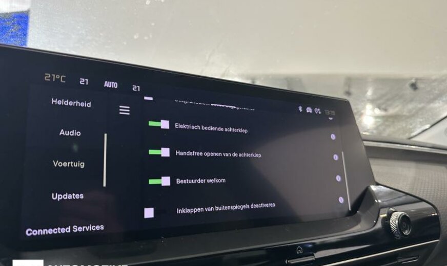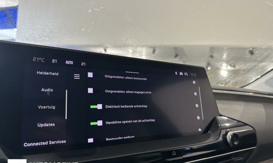 vanaf 08.22 16709, voorverwarming binnenruimte, achterruit met radio-ontvanger verbeterd, achterklep met toegang voetopening, radio kleur analoog met DAB, instrumentenblok met zwarte achtergrond, Rear Cross Traffic Alert, Smartphone lader, omgevingsverlichting, automatisch inschakelende lichten adaptatief, pedalendrager Alu, opbergvak kofferruimte variabel, beeldscherm LCD 12\\\", 1598 cc 1,6 L 132 KW 5GF EP6FADTXHP/166 KW Totaal , elektromotor PHEV Plug-in Hybrid Electric Vehicle , remschijven voor 330 mm, 7 J x 19 Alu zwart-zilver, uitlaatgasnorm Euro 6.3, batterij 70 Ah EF, lader batterij 7 kW enkelfasig , afdekking uitlaateinde chroom