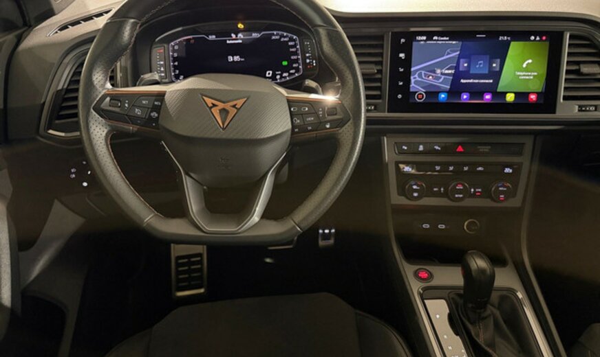 Cupra Ateca Informations générales Marque: CUPRA Modèle: Ateca Type: 2.0 TSI 221kW VZ DSG 4WD Forme de carrosserie: Crossover Numéro de référence: R6522156 Numéro d'immatriculation: R65221 Transmission Réservoir de carburant: 55 litres Poids Poids à vide: 1.628 kg Environnement Émission de CO2: 201 g/km Label énergétique: D Classe d'émission: Euro 6e Consommation Consommation moyenne de carburant: 8,6 l/100km Condition État technique: bon État optique: bon Conditions d'intérieur: bon Garantie Garantie: Autopolis Occasion (€0) Garantie: 12 mois Paquets de livraison Emballage de livraison inclus: Autopolis Occasion (€0) Cet emballage de livraison contient: Autopolis Occasion (€0) (12 mois de garantie) Autres informations climatisation: fonctionne CUPRA ATECA VZ 300CV Moteur: 2.0L avec 4 cylindres en ligne Transmission : AUTOMATIQUE Verrouillage centralisé à distance et sans clé Système de navigation Régulateur de vitesse Assistant au freinage d'urgence Détection des panneaux routiers Détection de la fatigue du conducteur Palettes de changement de vitesse au volant Volant chauffant Sièges avants chauffants Capteur à l'arrière et à l'avant du véhicule Caméra de recul Park assist Android Auto Apple Carplay Bluetooth Dispositifs mains libres Volant multifonctions Climatisation auto Start / Stop automatique Isofix Barres de toit Véhicule non fumeur Nous parlons français We speak english Wir sprechen Deutsch Noi parlamo Italiano Falamos Português Govorimo Srpsko Hrvatski Sous réserve d'erreur dans l'annonce Reprise de votre véhicule possible Financement possible sur place: financement Crédit Classique ou Crédit Ballon Eco taxe France non inclus Bienvenue chez Autopolis Demandez dès maintenant une offre de reprise - sans aucun engagement - ou planifiez un essai du véhicule d'occasion de votre choix ! Nos conseillers commerciaux sont à votre disposition en ligne, par téléphone, ou directement en showroom. La liste des équipements a été établie avec le plus grand soin. Cependant, il se peut que certains équipements présents sur le véhicule ne soient pas mentionnés, ou que certains éléments indiqués ne soient finalement pas disponibles. Nous vous recommandons de vérifier les équipements importants pour vous avant de conclure votre achat. Cette liste est donnée à titre indicatif.