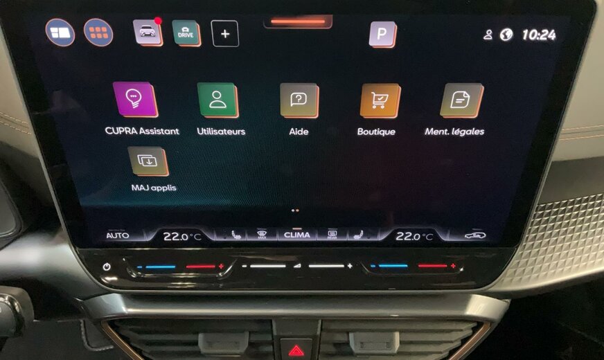 4U4U Taiga Grey \r\nCG Tissu et Dinamica Noir \r\nPA2 IMMERSIVE by Sennheiser™ pour intérieur DYNAMIC DESIGN ou PROGRESSIVE DESIGN \r\nPB2 Pack Edge \r\nPD2 DRIVING PERFORMANCE - POLAR COPPER 19\\\'\\\' \r\nPG6 Roue de secours à taille réduite 18\\\'\\\' \r\nPP2 PURE PERFORMANCE \r\nPQ6 Jupes latérales spécifiques CUPRA en Dark Aluminium \r\nPS2 DYNAMIC DESIGN - Sièges baquets Dinamica® \r\nPTC SKYLINE - Toit ouvrant électrique et panoramique \r\nWF9 INTELLIGENT DRIVE Lite \r\n9Z0 Tension de service 12 V \r\nS0C Quantités d\\\'introduction