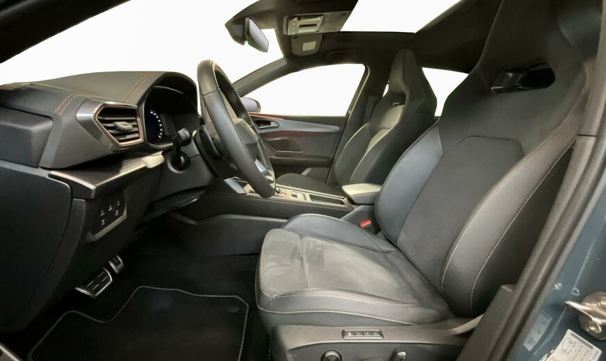 9K9KFiord Blue\r\nCGDYNAMIC DESIGN - Sièges baquets Dinamica®\r\nPA2IMMERSIVE by Sennheiser™ pour intérieur DYNAMIC DESIGN ou PROGRESSIVE DESIGN \r\nPG6Roue de secours à taille réduite 18\\'\\'\r\nPQ6Jupes latérales spécifiques CUPRA en Dark Aluminium\r\nPS2DYNAMIC DESIGN - Sièges baquets Dinamica®\r\nPTCSKYLINE - Toit ouvrant électrique et panoramique\r\nWF2INTELLIGENT DRIVE DSG