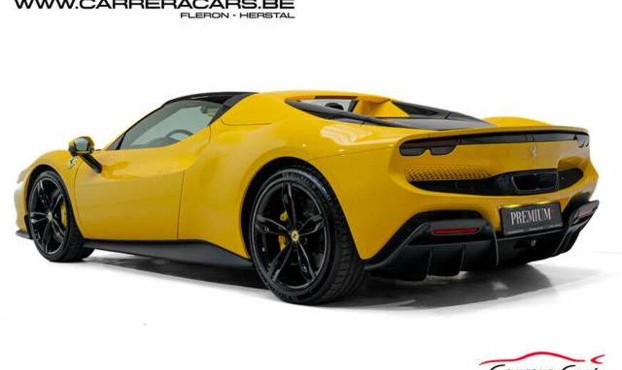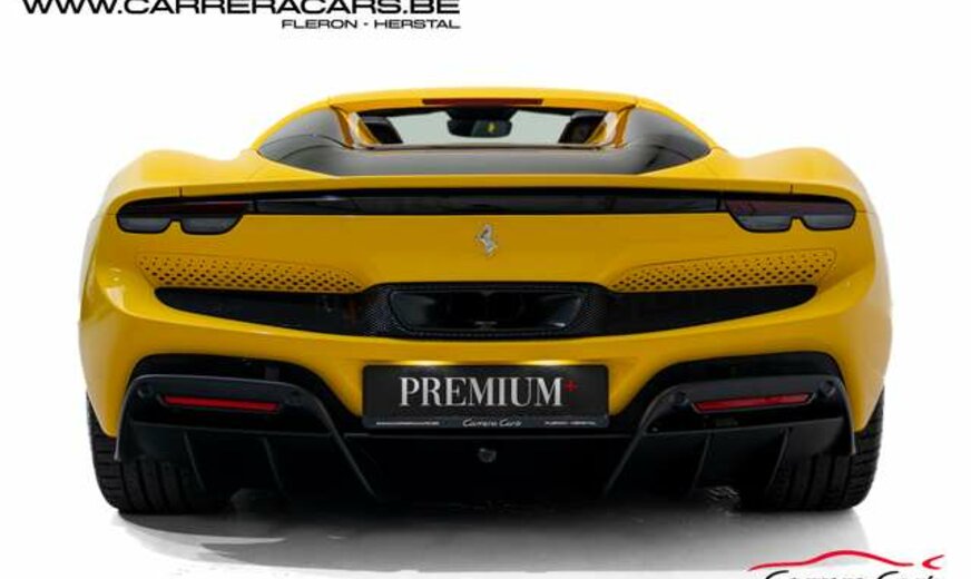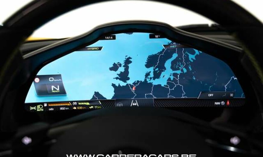* (EN) : Colour Giallo Triplo Strato,Supension Lifter, Daytona racing seats, Alcantara & Carbon seats, Alzasedile Sportivo, Horse stitched on Headrest, Carbon fibre streering wheel + leds, Premium Hifi system JBL, Surround view, Navigation system, Carplay, Head-Up Display, Wireless Smartphone Charger, Black ceramic exhaust pipes, Electrochromic rearviex mirror, Front and Rear Parking Sensors, Adaptive Cruise Control, Cruise, Lane Assist, Full LED Headlights with AFS, Electronic Parking Brake, Yellow brake calipers, Automatic Climate Control, Power Steering, MyFerrari connect, ...