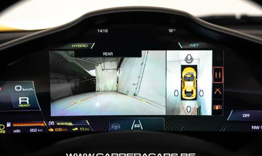 * (EN) : Colour Giallo Triplo Strato,Supension Lifter, Daytona racing seats, Alcantara & Carbon seats, Alzasedile Sportivo, Horse stitched on Headrest, Carbon fibre streering wheel + leds, Premium Hifi system JBL, Surround view, Navigation system, Carplay, Head-Up Display, Wireless Smartphone Charger, Black ceramic exhaust pipes, Electrochromic rearviex mirror, Front and Rear Parking Sensors, Adaptive Cruise Control, Cruise, Lane Assist, Full LED Headlights with AFS, Electronic Parking Brake, Yellow brake calipers, Automatic Climate Control, Power Steering, MyFerrari connect, ...