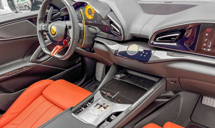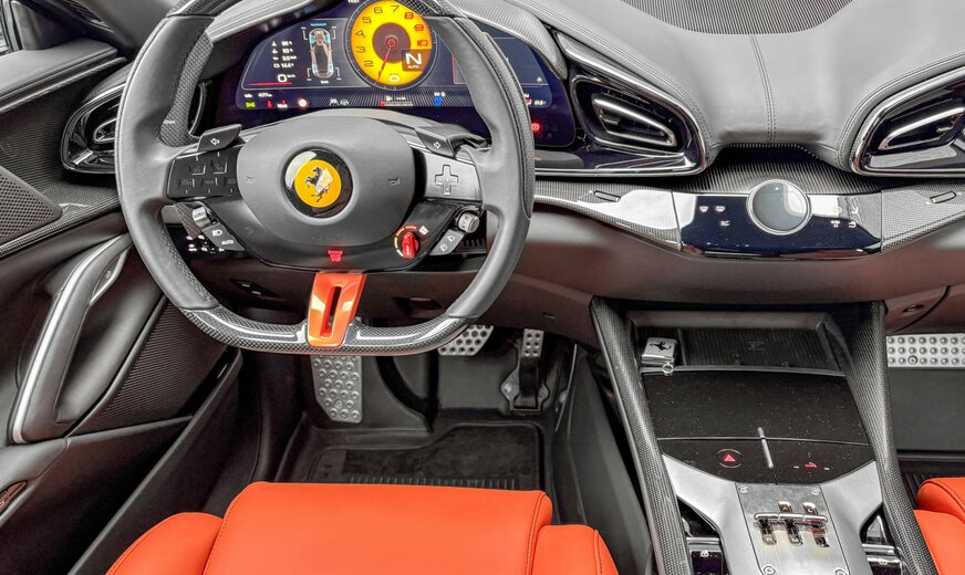 EXTRARANGE LEATHER ON SEATS CARB. FIB. STEERING WHEEL + LEDS SINGLE-COL. LIV. ON STEERING WHEEL LWR PANEL ALUMINIUM DRIVER&PASS.FOOTREST SPECIAL COLOURS PRIVACY REAR WINDOWS REV COUNTER IN YELLOW