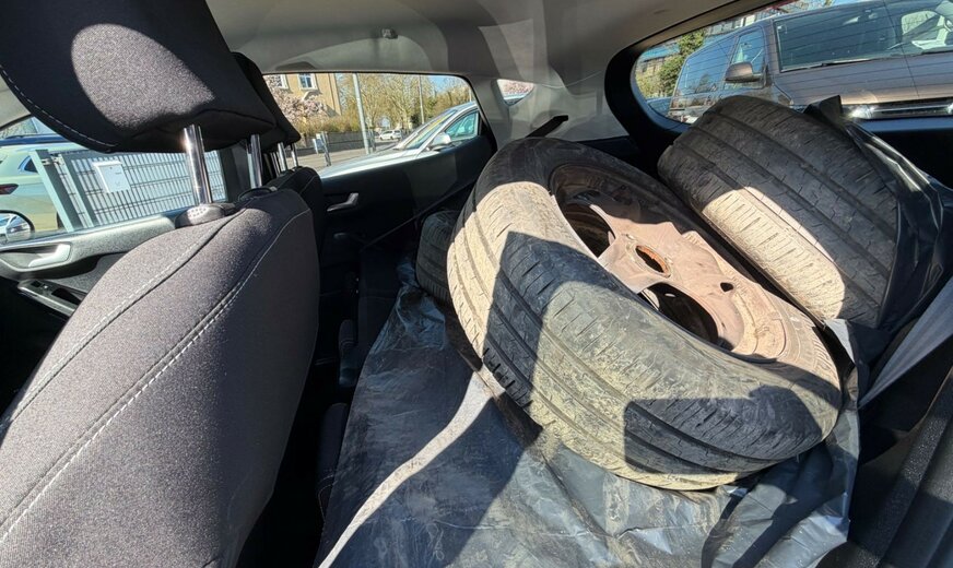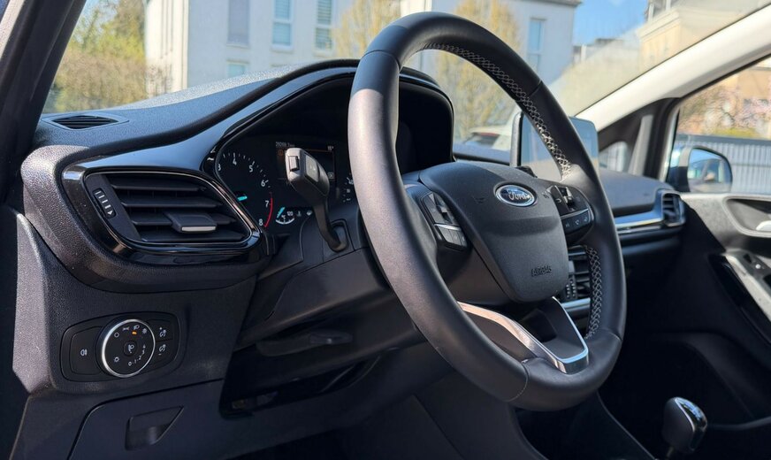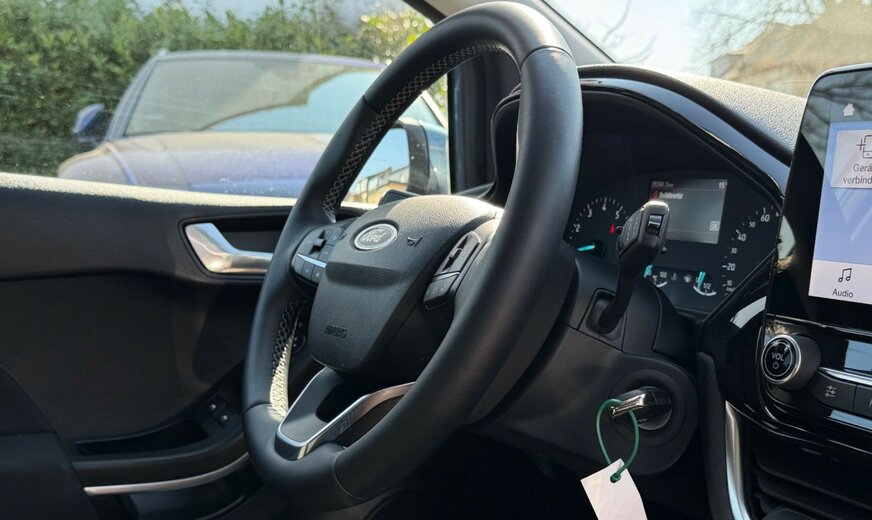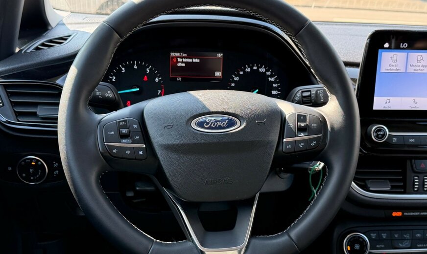Airbag Beifahrerseite abschaltbar, Ambiente-Beleuchtung vorn (LED), Audiosystem: Radio mit Ford SYNC (AppLink und Touchscreen), AuÃenspiegel elektr. verstellbar, AuÃenspiegel Wagenfarbe, Blinkleuchte in AuÃenspiegel integriert, Bord-/Verbrauchscomputer, Brillenfach in Dachhimmel / Dachkonsole integriert, Dachspoiler Wagenfarbe, Eco-Anzeige für verbrauchsoptimiertes Fahren (EcoCoach), Einparkhilfe hinten, Elektr. Bremskraftverteilung (EBD), Energierückgewinnung (Smart Regenerative Charging), Fahrassistenz-System: Berganfahr-Assistent (Hill-Holder), Fahrassistenz-System: Notbrems-Assistent, Fahrassistenz-System: Sicherheitssystem SYNC mit automatischem Notruf, Fahrassistenz-System: Spurhalteassistent mit Müdigkeitserkennungs-Sensor, Fahrassistenz-System: Verkehrsschildassistent, Farbdisplay für Bordcomputer, Fensterheber elektrisch vorn + hinten mit KomfortschlieÃung, FuÃmatten Velours - vorn, Getriebe 6-Gang - Typ: 6MX65, Innenraumfilter: Staub- und Pollenfilter, Intelligent Protection System (IPS), Isofix-Aufnahmen für Kindersitz, Karosserie: 5-türig, Klimaautomatik, Kopfstützen hinten mechan. verstellbar (3 Stück), Lenksäule (Lenkrad) höhen-/längsverstellbar, Leseleuchte vorn, LM-Felgen, Mild-Hybrid 92 kW (Motor 1,0 Ltr. - 92 kW EcoBoost), Modellpflege, My Key (2. Fahrzeugschlüssel programmierbar), Reifen-Reparaturkit, Reifendruck-Kontrollsystem, Rücksitz geteilt, Rücksitzlehne klappbar, Schadstoffarm nach Abgasnorm Euro 6, Schadstoffarm nach Abgasnorm Euro 6d, Scheinwerfer LED, Scheinwerfer mit Ausschaltverzögerung, Scheinwerfer mit BegrüÃungsfunktion, Scheinwerfer-Assistent mit Tag-/Nachtsensor, Sitz vorn links höhenverstellbar, Sonnenblende links mit Spiegel, Sonnenblende rechts mit Spiegel, Sportsitze vorn, Start/Stop-Anlage, StoÃfänger Wagenfarbe, Türgriffe auÃen Wagenfarbe, Verglasung getönt, Warnanlage für Sicherheitsgurte hinten, Zierleisten unterhalb Seitenscheiben Chrom-Dekor