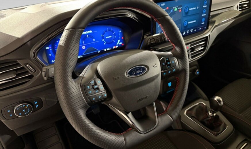 Ford Focus Informations générales Marque: Ford Modèle: Focus Clipper Type: 1.0i EcoBoost MHEV 92kW ST-Line X Code du modèle: - Numéro de référence: PPL88176 Numéro d'immatriculation: PPL881 Informations techniques Couple: 170 Nm Commande: Traction avant Réservoir de carburant: 52 litres Mesures Dimensions (LxlxH): 466 x 182 x 149 cm Empattement: 270 cm Poids Poids à vide: 1.388 kg Capacité de charge: 537 kg PBV: 1.925 kg Poids de traction max.: 1.000 kg (non freiné 690 kg) Environnement et consommation Consommation moyenne de carburant: 5,4 l/100km Ãmission de CO2: 122 g/km Label énergétique: B Condition Ãtat technique: bon Ãtat optique: bon Conditions d'intérieur: bon Garantie Garantie: Autopolis Occasion (â¬0) Garantie: 12 mois Paquets de livraison Emballage de livraison inclus: Autopolis Occasion (â¬0) Cet emballage de livraison contient: Autopolis Occasion (â¬0) (12 mois de garantie) Autres informations climatisation: fonctionne FORD FOCUS IV ST-LINE 125CV Moteur: 1.0L avec 3 cylindres en ligne Transmission : MANUELLE 6 VITESSE Verrouillage centralisé à distance et sans clé Système de navigation Régulateur de vitesse adaptatif Assistant au freinage d\'urgence Avertisseur angle mort Aide au maintien de voie Reconnaissance des panneaux routiers Android Auto Apple Carplay Bluetooth Cockpit digitale Caméra de recul Capteur à l'avant et à l'arrière du véhicule Pare-brise chauffant Sièges avant et volant chauffant Barre de toit Isofix Véhicule non fumeur Nous parlons français We speak english Wir sprechen Deutsch Noi parlamo Italiano Falamos Português Govorimo Srpsko Hrvatski Sous réserve d'erreur dans l'annonce Reprise de votre véhicule possible Financement possible sur place: financement Crédit Classique ou Crédit Ballon Eco taxe France non inclus Bienvenue chez Autopolis Demandez dès maintenant une offre de reprise - sans aucun engagement - ou planifiez un essai du véhicule d'occasion de votre choix ! Nos conseillers commerciaux sont à votre disposition en ligne, par téléphone, ou directement en showroom. La liste des équipements a été établie avec le plus grand soin. Cependant, il se peut que certains équipements présents sur le véhicule ne soient pas mentionnés, ou que certains éléments indiqués ne soient finalement pas disponibles. Nous vous recommandons de vérifier les équipements importants pour vous avant de conclure votre achat. Cette liste est donnée à titre indicatif.Â