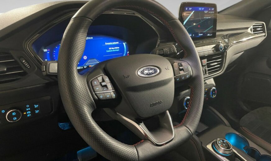 Ford Kuga Informations générales Marque: Ford Modèle: Kuga Type: 2.5i PHEV Aut. 165kW ST-Line Forme de carrosserie: Crossover Code du modèle: - Numéro de référence: HPJ768815 Numéro d'immatriculation: HPJ768 Informations techniques Couple: 200 Nm Transmission Hybride rechargeable: Oui Réservoir de carburant: 45 litres Gamme: 56 km Configuration essieu Commande: Traction avant Performances Accélération (0-100): 9,2 s Vitesse de pointe: 200 km/h Mesures Dimensions (LxlxH): 462 x 188 x 169 cm Empattement: 271 cm Poids Poids à vide: 1.844 kg Capacité de charge: 476 kg PBV: 2.320 kg Poids de traction max.: 1.500 kg (non freiné 750 kg) Batterie Batterie: 14 kWh Environnement et consommation Consommation moyenne de carburant: 1 l/100km Ãmission de CO2: 22 g/km Label énergétique: A Garantie Garantie: Autopolis Occasion (â¬0) Garantie: 12 mois Paquets de livraison Emballage de livraison inclus: Autopolis Occasion (â¬0) Cet emballage de livraison contient: Autopolis Occasion (â¬0) (12 mois de garantie) FORD KUGA ST LINE 224CV Moteur: 2.5L avec 4 cylindres en ligne Transmission : AUTOMATIQUE Verrouillage centralisé à distance et sans clé Système de navigation Régulateur de vitesse adaptative Assistant au freinage d'urgence Système au maintien de voie Avertisseur angles morts Reconnaissance des panneaux routiers Capteur à l\'arrière et à l\'avant du véhicule Caméra de recul Park assist Sièges avant chauffant Bluetooth / Android Auto / Apple Carplay Climatisation auto Toit ouvrant et panoramique Start / Stop automatique Véhicule non fumeur Nous parlons français We speak english Wir sprechen Deutsch Noi parlamo Italiano Falamos Português Govorimo Srpsko Hrvatski Sous réserve d'erreur dans l'annonce Reprise de votre véhicule possible Financement possible sur place: financement Crédit Classique ou Crédit Ballon Eco taxe France non inclus Bienvenue chez Autopolis Demandez dès maintenant une offre de reprise - sans aucun engagement - ou planifiez un essai du véhicule d'occasion de votre choix ! Nos conseillers commerciaux sont à votre disposition en ligne, par téléphone, ou directement en showroom. La liste des équipements a été établie avec le plus grand soin. Cependant, il se peut que certains équipements présents sur le véhicule ne soient pas mentionnés, ou que certains éléments indiqués ne soient finalement pas disponibles. Nous vous recommandons de vérifier les équipements importants pour vous avant de conclure votre achat. Cette liste est donnée à titre indicatif.Â