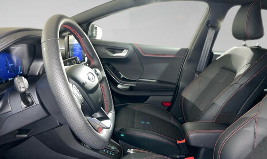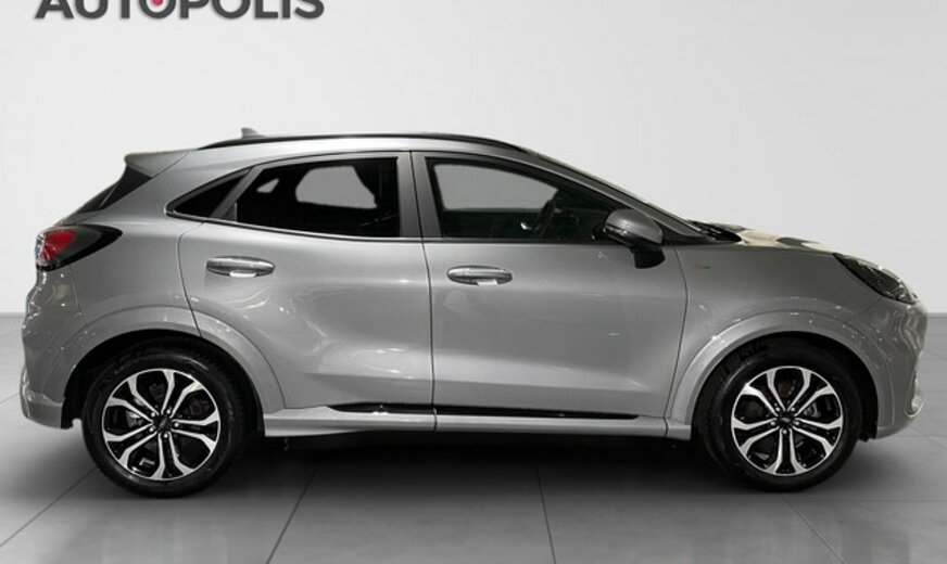 Ford Puma Informations générales Marque: Ford Modèle: Puma Type: 1,0 EcoBoost Hybrid 114kW ST-Line Auto Forme de carrosserie: Crossover Numéro de référence: 2PJ86417 Numéro d'immatriculation: 2PJ864 Informations techniques Couple: 240 Nm Commande: Traction avant Réservoir de carburant: 42 litres Accélération (0-100): 8,7 s Vitesse de pointe: 200 km/h Mesures Dimensions (LxlxH): 420 x 180 x 155 cm Empattement: 258 cm Poids Poids à vide: 1.334 kg Capacité de charge: 496 kg PBV: 1.830 kg Poids de traction max.: 900 kg (non freiné 665 kg) Environnement et consommation Consommation moyenne de carburant: 5,7 l/100km Émission de CO2 (WLTP): 129 g/km Label énergétique: D Garantie Garantie: Autopolis Occasion (€0) Garantie: 12 mois Paquets de livraison Emballage de livraison inclus: Autopolis Occasion (€0) Cet emballage de livraison contient: Autopolis Occasion (€0) (12 mois de garantie) FORD PUMA ST LINE 155CV Moteur: 1.0L AVEC 3 CYLINDRES EN LIGNE  Transmission : AUTOMATIQUE  Verrouillage centralisé à distance Système de navigation Assistant au freinage d\'urgence Régulateur de vitesse adaptatif Avertisseur angles morts Détection des panneaux routiers Détection de fatigue du conducteur Caméra de recul Capteur à l'avant et à l'arrière du véhicule Bluetooth Cockpit digital Climatisation automatique Pare brise chauffant Sièges avant et volant chauffant Chargement smartphone par induction Barre de toit Véhicule non fumeur Nous parlons français We speak english Wir sprechen Deutsch Noi parlamo Italiano Falamos Português Govorimo Srpsko Hrvatski Sous réserve d'erreur dans l'annonce Reprise de votre véhicule possible Financement possible sur place: financement Crédit Classique ou Crédit Ballon Eco taxe France non inclus Bienvenue chez Autopolis Demandez dès maintenant une offre de reprise - sans aucun engagement - ou planifiez un essai du véhicule d'occasion de votre choix ! Nos conseillers commerciaux sont à votre disposition en ligne, par téléphone, ou directement en showroom. La liste des équipements a été établie avec le plus grand soin. Cependant, il se peut que certains équipements présents sur le véhicule ne soient pas mentionnés, ou que certains éléments indiqués ne soient finalement pas disponibles. Nous vous recommandons de vérifier les équipements importants pour vous avant de conclure votre achat. Cette liste est donnée à titre indicatif.