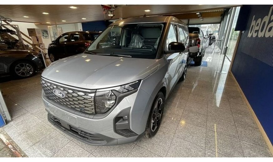 Nieuw model Transit Courier Full Electric in Solar Silver, onmiddelijk beschikbaar. Deze lichte vracht full electric zal uw ritten nog aangenamer maken. Met inclusief : Vaste trekhaak, Driver Assistance Pack, Rubber laadvloer, 400W stopcontact, Led verlichting in de laadriumte.