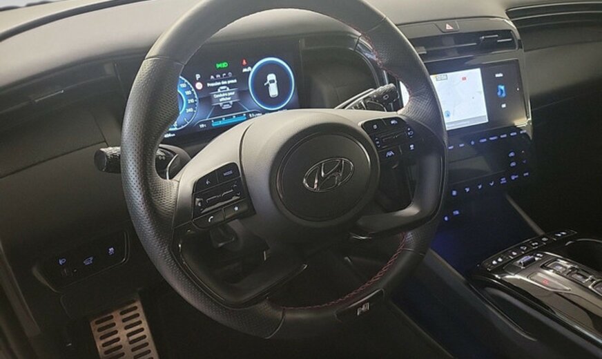 Hyundai Tucson Informations générales Marque: Hyundai Modèle: Tucson Type: 1.6 SHINE N-LINE Année du modèle: 2022 Code du modèle: - Numéro de référence: NJ270971 Numéro d'immatriculation: NJ2709 Informations techniques Couple: 320 Nm Commande: Traction avant Réservoir de carburant: 54 litres Accélération (0-100): 11,4 s Vitesse de pointe: 180 km/h Mesures Dimensions (LxlxH): 452 x 186 x 165 cm Empattement: 268 cm Poids Poids à vide: 1.545 kg Capacité de charge: 620 kg PBV: 2.165 kg Poids de traction max.: 1.650 kg (non freiné 750 kg) Environnement et consommation Consommation moyenne de carburant: 5,2 l/100km Émission de CO2: 138 g/km Label énergétique: C Garantie Garantie: Autopolis Occasion (€0) Garantie: 12 mois Paquets de livraison Emballage de livraison inclus: Autopolis Occasion (€0) Cet emballage de livraison contient: Autopolis Occasion (€0) (12 mois de garantie) HYUNDAI TUCSON SHINE N-LINE 136 CV Moteur: 1.6L AVEC 4 CYLINDRES EN LIGNE Transmission : AUTOMATIQUE  Verrouillage centralisé à distance et sans clé Système de navigation Régulateur de vitesse  adaptatif Angle mort Alerte de franchissement de ligne Capteur à l'arrière et à l'avant Caméra de recul Sièges avants chauffants Apple Carplay Android auto Bluetooth Isofix à l'arrière Véhicule non fumeur Nous parlons français We speak english Wir sprechen Deutsch Noi parlamo Italiano Falamos Português Govorimo Srpsko Hrvatski Sous réserve d'erreur dans l'annonce Reprise de votre véhicule possible Financement possible sur place: financement Crédit Classique ou Crédit Ballon Eco taxe France non inclus Bienvenue chez Autopolis Demandez dès maintenant une offre de reprise - sans aucun engagement - ou planifiez un essai du véhicule d'occasion de votre choix ! Nos conseillers commerciaux sont à votre disposition en ligne, par téléphone, ou directement en showroom. La liste des équipements a été établie avec le plus grand soin. Cependant, il se peut que certains équipements présents sur le véhicule ne soient pas mentionnés, ou que certains éléments indiqués ne soient finalement pas disponibles. Nous vous recommandons de vérifier les équipements importants pour vous avant de conclure votre achat. Cette liste est donnée à titre indicatif.