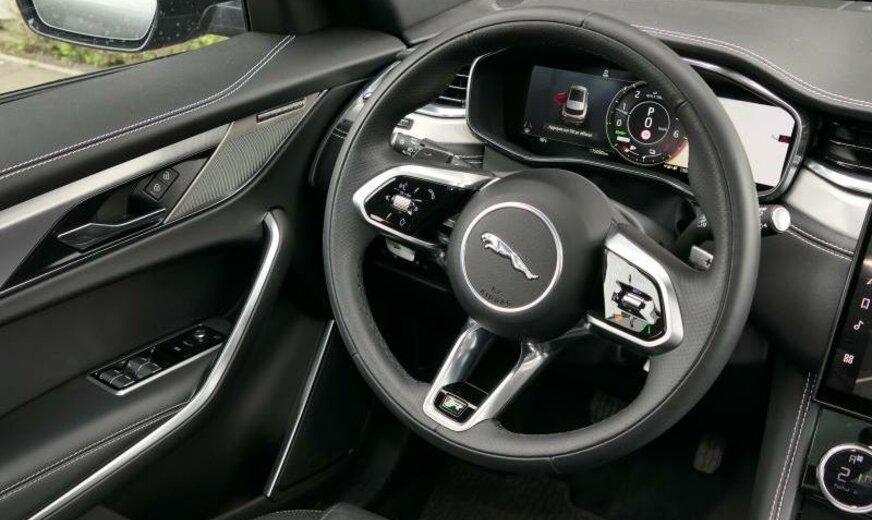 CO2:49gr/km cold climate pack, front headrests with jaguar leaper embossing, secure tracker 12-month subscrlption , remote, external sound eng enhancemt, brake pads nao front/low metal rear, charging equipment-var 2 basic , charging cable-mode 3 var 2 , two-zone climate control, voice control, digital audio broadcast dab radio, sound system, pivi - diamond, navigation pro, wi-fi, sos assistance call, online pack with data plan, pivi pro connected , adaptive dynamics, open differential with torque vectoring by braking, towing eye cover narvik black, tyre repair system, body-coloured door mirror caps, lockable glovebox, auto-dimming interior rear view mirror, ebony headlining, r-dynamic branded leather steering wheel, r-dynamic+black pack exterior 5, heated front seats, rear centre headrest, door armrest - pvc, rear armrest with twin cupholders, 40:20:40 split fold rear seat, sport seats, light oyster stitching, perforated grained leather seats with contrast stitching, ebony / ebony, ip contrast - ebony/ebony, interactive driver display, ip stitch - light oyster, heated washer jets, stop/start, r-dynamic model, electric cabin pre-conditioning, metal loadspace scuff plate, metal treadplates with r-dynamic branding, manually adjustable steering column, filler neck phev, power socket s , powerpack 05, locking wheel nuts, front number plate fixing row, tyre pressure monitoring system tpms , 19\\\" wheel, gloss black grille with gloss black surround, premium led headlights with signature drl, emergency braking, tailgate / boot lid spoiler, powered tailgate / boot lid, double locking, intrusion sensor, satin chrome gearshift paddles, body-coloured door handles, gloss black side vents, gloss black extended side sills, b/sde cladding body colour, gloss black side window surround, int env col ebony, lane keep assist, traffic sign recognition and adaptive speed limiter, driver condition monitor, rear camera, forward facing camera, 11.4\\\" touchscreen, connected navigation pro, morzine headlining, jaguardrive control, ip pu/pvc, console stitch - light oyster, door stitch light oyster, non-smoker\\\'s pack, double charge socket ac/dc type 2 combo, tyre recommended plate - non english, petrol/electric hybrid, twin-blade sunvisors with illuminated vanity mirrors, ebony carpet, power output - 404ps, eoc gen 1, front seat cushion power fore/aft, front seat cushion power height, front seat cushion power tilt, front seat squab power recline, front headrest manual height, front seat lumbar - 4 way, apple carplay® subject to availability , android auto™ subject to availability , connected navigation data, esim, configurable dynamics, ebony morzine headlining, public charging cable, front and rear parking aid, 2.0 aj20 p4h phev, 40:20:40 folding rear seats with centre armrest, f-pace, group 1, d7a, r-dynamic s, styling - r-dynamic, interior enviroment pack 297, auto 8 speed trans - 8p75ph, heated, electric, power fold, memory door mirrors with approach lights and auto-dimming driver side, premium cabin lighting, privacy glass, keyless entry, production build for retailer ordering, ebony perforated duoleather sport seats with ebony/ebony interior, sliding panoramic roof, r-dynamic s 404ps auto, eiger grey, home charging cable, gloss black roof rails, driver assist pack, 19\\\" style 5103, diamond turned with gloss black contrast, driver seat memory, tyre config 4, daytime running lights drl , 2.0 aj20 p4h phev 200bh, animated directional indicators, 23my, 12-way heated electric driver memory front seats with 2-way manual headrests, auto high beam assist ahba , ac/dc charging, black exterior pack, front spring load -class d, rear spring load - class h