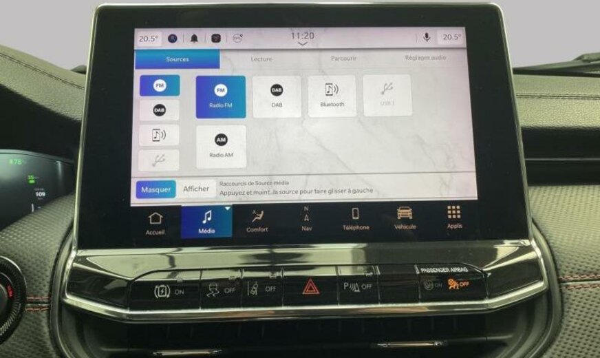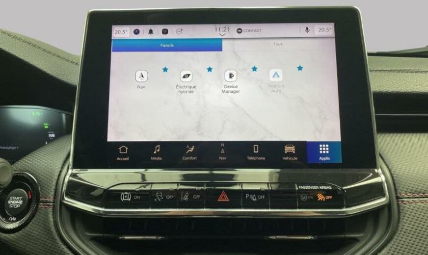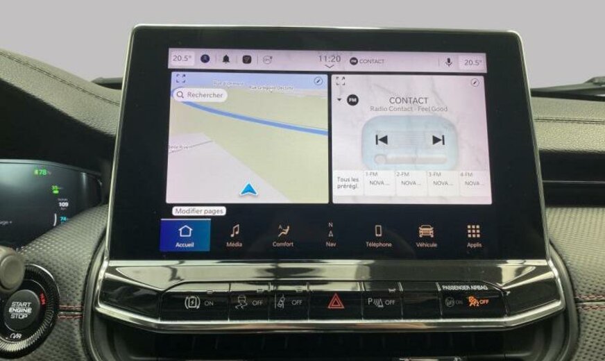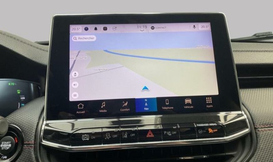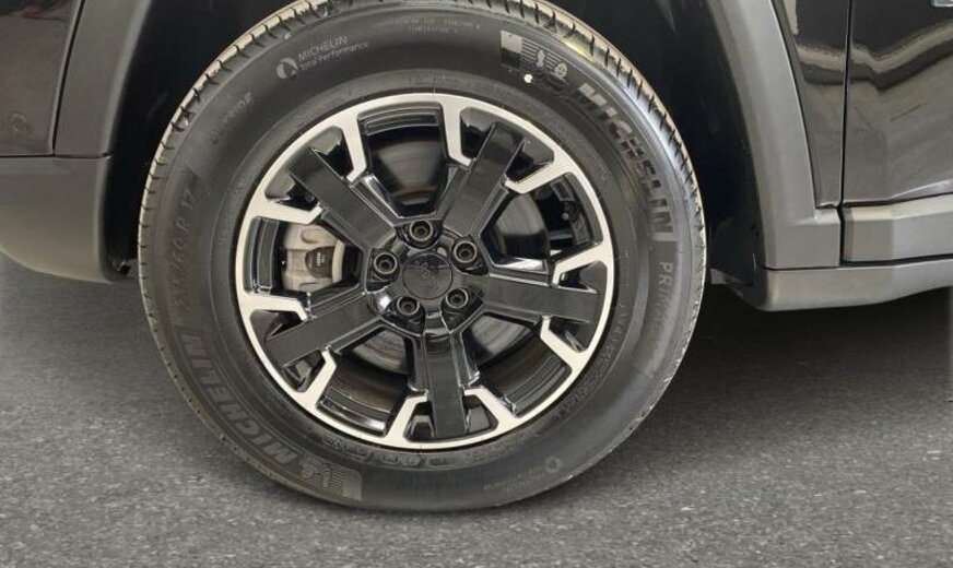 autocollants sur le capot moteur, rétroviseurs Gloss Black, Series \\\"Premium\\\" P , Keyless-Entry, rétroviseurs avec clignotant intégré, rétroviseurs rabattables électrique, rétroviseurs chauffants, feux ar Premium, système \\\"U-connect\\\", allumage automatique des phares, feu antibrouillard ar, hayon avec commande mains libres électrique, moniteur LCD 10,1\\\", écran grille de calandre gris satiné, enjoliveurs avec insert Neutral gris, pare-chocs av/ar peints, enjoliveurs cadre de portes noir brillant, monogrammes gloss noir, 1332 cc 1,3 L 132 KW essence / 44 KW électrique , \\\"Off-Road\\\", AWD, PHEV System, freins Heavy Duty , protection des piétons, airbag pour les genoux, galerie de pavillon noire, Italie MV, poignées de porte peintes