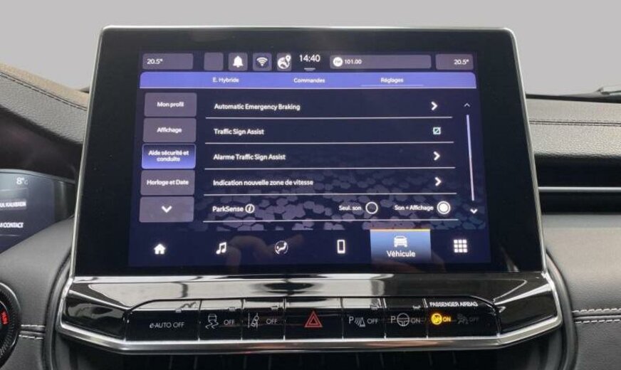 rétroviseurs Gloss Black, Keyless-Entry, rétroviseurs avec clignotant intégré, rétroviseurs avec lampe, rétroviseurs rabattables électrique, rétroviseurs chauffants, feux ar Premium, système \\\"U-connect\\\", grille de calandre noire/chromée, allumage automatique des phares, feu antibrouillard ar, moniteur LCD 10,1\\\", pare-chocs av/ar peints, enjoliveurs des cadres de portes chromés, \\\"Blind Spot Monitoring System\\\", 1469 cc 1,5 L 96 KW Total , \\\"Euro\\\", PHEV System, freins Heavy Duty , protection des piétons, airbag pour les genoux, Italie MV, poignées de porte peintes, 2 couches mica