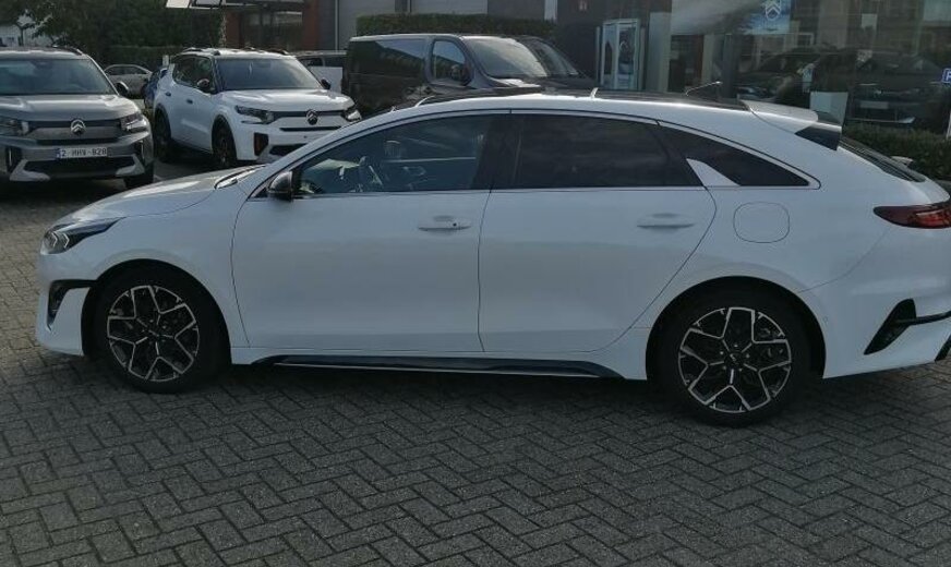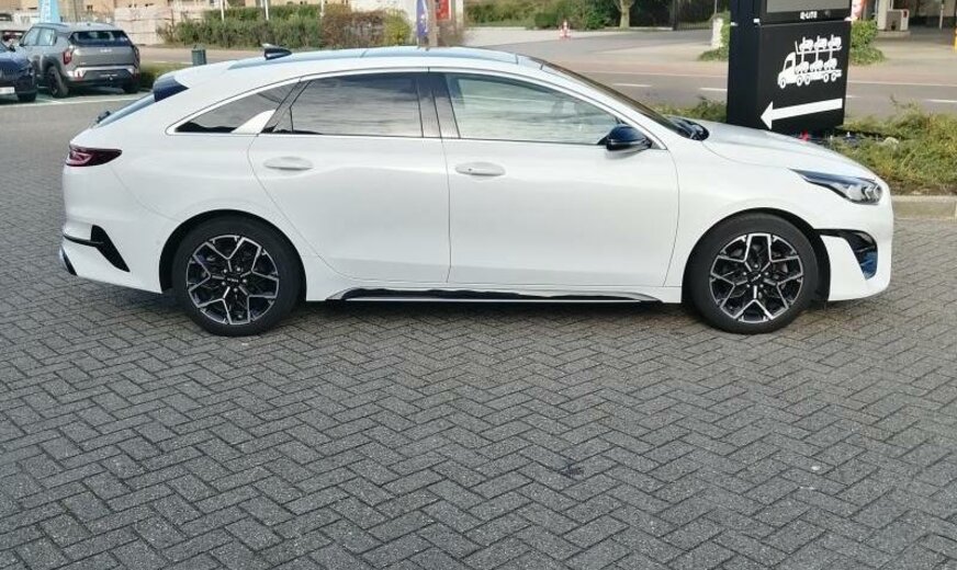 vanaf 04.22, ventilatie-uitgangen achter, voorruit met automatische ontdooiing, koeling alternatief, buitenspiegels met geïntegreerde knipperlichten, buitenspiegels elektrisch klapbaar, deurlijsten onder voor/achter inox, haaievin antenne, Soundsystem JBL, LED-dagrijlichten, rugleuning gesplitst, zetels achter verwarmbaar, bagagenet, radiatorrooster Gloss Black, camera v, stopcontact 12 V, zijbeschermlijsten, GLS, binnenspiegel elektrisch multi-functie, deurgreep buiten met verlichting, intelligent parkeersysteem, 1482 cc 1,5 L 117 KW, 7 V DCT, Type Europa + Australië, Achteruitgangerkenning, 7 J x 17 Alu Type C, ESC, pedalen Alu, uitlaatgasnorm Euro 6, handrem elektrisch, achterklepbediening elektrisch, Facelift Ceed/ProCeed vanaf 11.20 - Ceed Hybrid vanaf 07.20 , opbergvak in kofferruimte