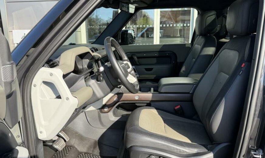 CO2:240gr/km remote, trim level 3, digital audio broadcast dab radio, online pack with data plan, pivi pro connected , black exposed rear recovery eyes, heated, electric, power fold door mirrors with approach lights and auto-dimming driver side, clearsight interior rear view mirror, leather steering wheel, 5 seats, map pocket - mounted, door armrest - premium leather, khaki / ebony, interactive driver display, ip contrast - kharki, stop/start, version - x-dynamic, illuminated metal treadplates with brand-name scrlpt, electrically adjustable steering column, locking wheel nuts, tyre pressure monitoring system tpms , loadspace cover, front fog lights, automatic headlight levelling, led tail lights, matrix led headlights with signature drl, adaptive cruise control, emergency braking, keyless entry, clear exit monitor, wade sensing, intrusion sensor, active transmission warming, int env col - ebony, mhev2, lane keep assist, traffic sign recognition and adaptive speed limiter, driver condition monitor, blind spot assist, 3d surround camera, rear traffic monitor, rear collision monitor, 10\\\" touchscreen, ip - windsor leather with stitch, sunvisors with illuminated vanity mirrors, leather gearshift, click and go integrated base unit, apple carplay® subject to availability , android auto™ subject to availability , 360° parking aid, windsor perf/geotex/windsor, 14-way heated and cooled electric memory front seats with 4-way manual headrests, x-dynamic hse, styling - x-dynamic, nitra plant, auto 8 spd auto trans zf 8hp76, extended leather upgrade, air suspension pack, powerpack 16, interior enviroment pack 32, x-dynamic hse 250ps auto, comfort and convenience pack, khaki/ebony windsor leather and robustec seats with ebony interior, cold climate pack, double locking, morzine headlining, terrain response, connected navigation data, esim, front headrest manual fore/aft, ip insert - light grey, panoramic rear side glass, ebony headlining, steering column lock, side hinged tailgate, rr seat 40/20/40 fixed cushion, aerodynamic capability, non-smoker\\\'s pack, wi-fi, rear centre headrest, tyre recommended plate - non english, seat cushion power tilt, two-zone climate control, seat cushion power height, bbus with tilt sensor, front seat lumbar - 4 way, pivi - diamond, towing eye cover - narvik black, rear armrest with twin cupholders, seat cushion power fore/aft, isize, navigation pro, sos assistance call, defender, forward facing camera, bodyside cladding - narvik black, seat squab power recline, 3l aj20 d6h, open differential with torque vectoring by braking, detachable tow bar, gloss black bonnet louvres, console finisher-dark wood, production build for retailer ordering, 20\\\" wheel, grille-silicon silver/narvik black srd, short wheelbase, voice control, front number plate fixing row, bmpr lwr vlc - silicon silver, daytime running lights drl , front headrest manual height, heated and cooled front seats, connected navigation pro, x-dynamic exterior pack, front seat bolster - power, cross car beam in light grey powder coat brushed finish, driver and passenger seat memory, gloss black side vents, body-coloured door handles, wireless device charging, ebony morzine headlining, carpathian grey, black contrast roof, detachable tow bar, sliding panoramic roof, 20\\\" style 5098, satin dark grey, natural smoked dark oak veneer, black roof rails, secure tracker, meridian™ surround sound system, privacy glass, 20\\\" full size spare wheel, 40:20:40 fixed rear seats with centre armrest, vehicle support structure - yes, enterprise bill of material - yes, variant - yes, activity key