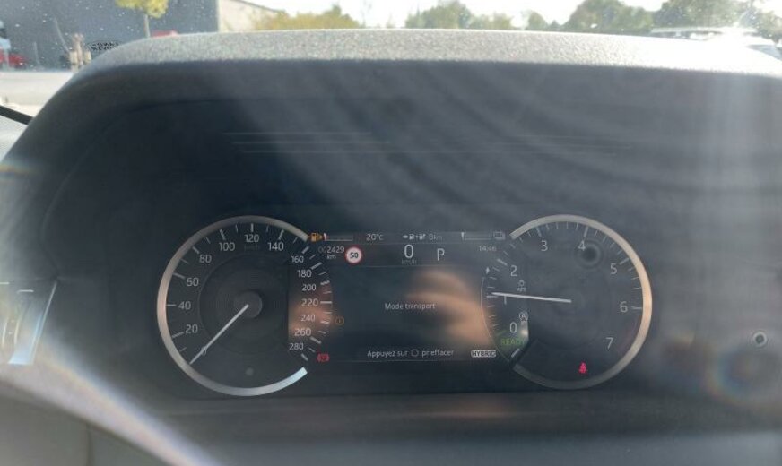 CO2:36gr/km cold climate pack, remote, external sound eng enhancemt, brake pads low copper, charging equipment-var 2 basic , charging cable-mode 3 var 2 , delete cooling vents and 1 usb in third row, voice control, digital audio broadcast dab radio, meridian™ sound system, pivi - diamond, navigation pro, wi-fi, sos assistance call, online pack with data plan, front passenger seat isofix, pivi pro connected , twin front cupholders, passive suspension, electric rear axle drive, electrically deployable tow bar, towing eye cover stealth, tyre repair system, gloss black door mirror caps, auto high beam assist ahba , heated, electric, power fold door mirrors with approach lights and auto-dimming driver side, auto-dimming interior rear view mirror, 20\\\" style 5076, ebony headlining, core ext/nrvk blk grl srnd/blk pck, 5 seats, heated front seats, driver seat memory, 60:40 rear seat fold, rear centre headrest, door armrest - pvc, perforated grained leather seats, rear armrest with twin cupholders, seat-back pockets on front row, fixed rear seats, ebony / ebony, ip contrast - ebony/ebony, analogue dials with central tft display, heated washer jets, starter system - fead integrated, electric cabin pre-conditioning, centre console with armrest, steering column lock, manually adjustable steering column, deployable scuttle air bag, filler neck phev, locking wheel nuts, gloss black discovery scrlpt, tyre pressure monitoring system tpms , 20\\\" wheel, loadspace cover, automatic headlight levelling, daytime running lights drl , black grille, cabin lighting, premium led headlights with signature drl, adaptive cruise control, emergency braking, keyless entry, powered tailgate / boot lid, bbus with tilt sensor, double locking, intrusion sensor, active transmission warming, grained black door claddings, gloss black side vents, bmpr lwr vlc narvik black, door trim panel tpo tech velor, lane keep assist, traffic sign recognition and adaptive speed limiter, driver condition monitor, rear camera, blind spot assist, forward facing camera, rear traffic monitor, rear collision monitor, connected navigation pro, console lid pvc, luxtec wrapped instrument panel topper, morzine headlining, gloss black trim finisher, row 1 usb x 1, double charge socket ac/dc type 2 combo, tyre recommended plate - non english, petrol/electric hybrid, leather gearshift, power output - 309ps, wireless device charging, seat cushion power fore/aft, seat cushion power height, seat cushion driver only pwr tilt, seat squab power recline, front headrest manual height, front seat lumbar - 4 way, apple carplay® subject to availability , android auto™ subject to availability , connected navigation data, esim, public charging cable, front and rear parking aid, 1.5l aj20 p3h phev, 1.5 aj20 p3h phev, discovery sport, fixed rear seats, group 1, d8, se, tyre config 1, powerpack 07, interior enviroment pack 80, 8-speed automatic transmission, fixed panoramic roof, ebony morzine headlining, secure tracker pro, home charging cable, ebony duoleather seats, 23my, black exterior pack, production build for retailer ordering, two-zone climate control with second row vents and temperature control, eiger grey, se 309ps auto, 12-way driver and 10-way passenger htd electric driver memory front seats w/ 2-way manual headrests, privacy glass, electrically deployable tow bar, black contrast roof, full leather twin-rim steering wheel, wireless device charging, front spring load -class h, rear spring load - class o