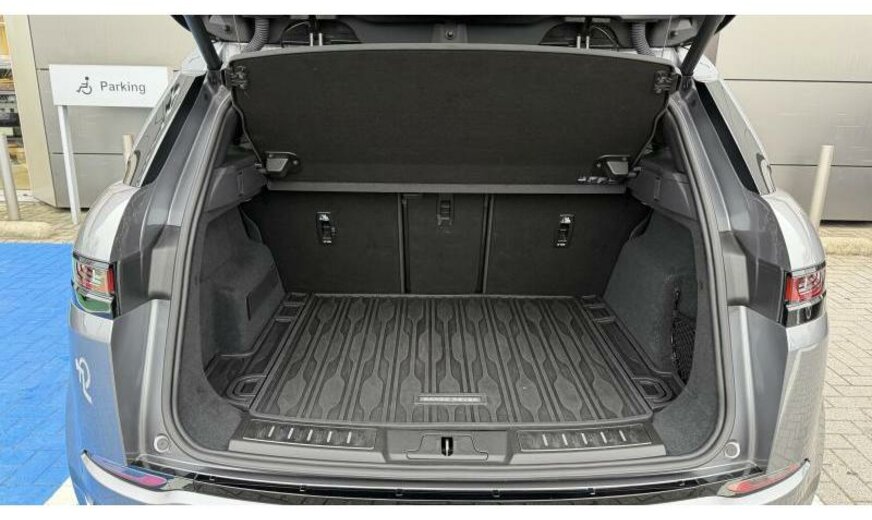 CO2:34gr/km powered tailgate / boot lid, cold climate pack, wireless device charging, wireless device charging, electrically adjustable steering column, illuminated metal treadplates with brand-name scrlpt, front spring load -class g, rear spring load - class l, secure tracker 12-month subscrlption , remote, external sound eng enhancemt, brake pads low copper, charging equipment-var 2 basic , charging cable-mode 3 var 2 , two-zone climate control, voice control, digital audio broadcast dab radio, bluetooth® connectivity, pivi - diamond, navigation pro, wi-fi, sos assistance call, online pack with data plan, knee protection, s/b - elr/plp lhd pretensioner, pivi pro connected , passive suspension, electric rear axle drive, electrically deployable tow bar, towing eye cover narvik black, gloss black door mirror caps, rain sensing windscreen wipers, auto high beam assist ahba , heated, electric, power fold door mirrors with approach lights and auto-dimming driver side, ebony headlining, heated front seats, driver seat memory, rear centre headrest, rear centre armrest, door armrest - pvc, perforated grained leather seats, 40:20:40 split fold rear seat, ebony / ebony, ip contrast - ebony/ebony, starter system - fead integrated, electric cabin pre-conditioning, steering column lock, deployable bonnet/scuttle abag, filler neck phev, power socket pack 1, locking wheel nuts, tyre pressure monitoring system tpms , 20\\\" wheel, ip insert bright chrome, automatic headlight levelling, daytime running lights drl , gloss black grille, premium led headlights with signature drl, emergency braking, animated directional indicators, weather protection seal, bbus with tilt sensor, double locking, intrusion sensor, active transmission warming, gloss black side vents, bmpr lwr vlc satin blk/narvik blk, door trim panel tpo/pvc, b/sde cladding black, lane keep assist, traffic sign recognition and adaptive speed limiter, driver condition monitor, rear camera, blind spot assist, forward facing camera, rear traffic monitor, touch pro duo, connected navigation pro, luxtec wrapped instrument panel topper, morzine headlining, centre console storage surround finishers in satin chrome, non-smoker\\\'s pack, double charge socket ac/dc type 2 combo, tyre recommended plate - non english, door lock shields, petrol/electric hybrid, leather gearshift, power output - 309ps, front seat cushion power fore/aft, front seat cushion power height, front seat squab power recline, front headrest manual height, front seat lumbar - 4 way, apple carplay® subject to availability , android auto™ subject to availability , connected navigation data, esim, public charging cable, front and rear parking aid, 1.5 aj20 p3h phev, 40:20:40 folding rear seats with centre armrest, range rover evoque, group 1, se, tyre config 2, powerpack 07, interior enviroment pack 38, 8-speed automatic transmission, production build for retailer ordering, home charging cable, sliding panoramic roof, black contrast roof, twin front cupholders with cover, ebony grained leather seat facings with ebony/ebony interior, black exterior pack, premium cabin lighting, 20\\\" style 5079, gloss black, meridian™ sound system, keyless entry, electrically deployable tow bar, gradated linear dark aluminium trim finisher, privacy glass, full leather steering wheel, eiger grey, ebony morzine headlining, adaptive cruise control, rear collision monitor, auto-dimming interior rear view mirror, analogue dials with central tft display, tyre repair system, front seat cushion drvr only pwr tilt, 1.5 aj20 p3h phev 200cu, 12-way driver and 10-way passenger htd electric driver memory front seats w/ 2-way manual headrests, d8, 12-way drvr mem and 10-way passenger htd elec frnt sts w/ 2-way manual headrests and rr cntr armrst, se 309ps auto, 23my