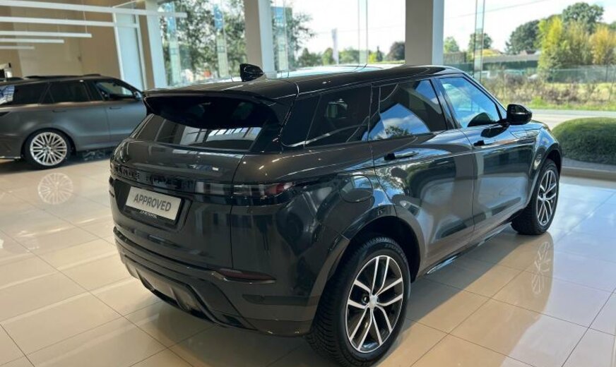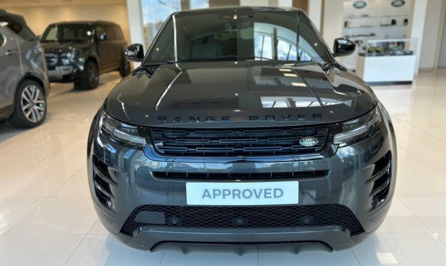 CO2:29gr/km cold climate pack, comfort pack, 715/2007, g3, 005cm, 005cn, 005ra, secure tracker pro 12-month subscrlption , remote, external sound eng enhancemt, brake pads low copper, 020ha, 021gz, charging cable-mode 3 var 2 , 021sa, 022fb, 022ja, 022la, 025cw, voice input / recognition system, 025fw, digital audio broadcast dab radio, meridian™ sound system, pivi diamond, navigation gsr-ii, wi-fi, sos assistance call, online pack with data plan, 025sf, knee protection, 026bk, s/b - elr/plp lhd pretensioner, wireless device charging, isofix row 2, pivi pro connected , 026rd, passive suspension, electric rear axle drive, towbar prep/bike carrier euro, towing eye cover narvik black, 029fk, ext mirror finish - black, 030ja, auto high beam assist ahba , heated, electric, power fold door mirrors with approach lights and auto-dimming driver side, electro chromic interior mirror, ebony headlining, 032qa, driver seat memory, rear centre headrest, rear centre armrest, perforated grained leather seats, 40:20:40 split fold rear seat, 033lr, 033lv, 033na, 033oa, 033rj, 033rq, 033va, 034cp, door armrest - pvc benecke, ebony / ebony, 034la, 034ra, 035aa, tyre config 3, kph only instrument pack, ip contrast - ebony/ebony, front driver display, dynamic exterior black pack 12, 039ia, starter system - fead integrated, 043bc, electric cabin pre-conditioning, 046ac, 046da, chrome treadplates, steering column lock, front wheel steering, manually adjustable steering column, 049ea, deployable bonnet/scuttle abag, bright metal pedals, filler neck phev, 053fa, power socket pack 2, powerpack 69, delete locking wheel nuts, 056aa, number plate inserts, 056bk, 056by, 059da, tyre pressure monitoring system tpms , 19\\\" wheel, 062zz, loadspace cover, dynamic headlamp leveling, daytime running lights drl , gloss black grille, led tail lights, led headlights with signature drl, adaptive cruise control, emergency braking, rear animated directional indicators, passive entry/push button start, 066cz, weather protection seal, 068ac, 069ba, 069ea, 069ga, powered tailgate / boot lid, 074qq, twin tone horn, double locking, perimetric volumetric protection, 076ez, satin chrome gearshift paddles, active transmission warming, front floor carpet mats, 079fz, gloss black side vents, cladding/sill narvik black, bmpr lwr vlc body colour/narvik black, gloss black bonnet louvres, door trim panel tpo/pvc benecke, lane keep assist, traffic sign recognition and adaptive speed limiter, driver condition monitor, rear camera, blind spot assist, forward facing camera, rear traffic monitor, 086ma, rear collision monitor, 086sa, 11.4\\\" touchscreen, connected navigation pro, europe nav region 1, 087zz, console lid pvc, morzine headlining, terrain response 2, dark anodised trim finisher, 089ka, ip tpo/pvc benecke, 090ya, non smokers pack, 095ja, double charge socket ac/dc type 2 combo, tyre recommended plate non english, 096va, eu certification, 5 door estate, 099ba, gsr 2, lock shields, petrol/electric hybrid, 4wd, 112ra, 116az, ebony carpet, power output - 268ps, 153fa, 153ha, wireless device charging, 177aa, front seat cushion power fore/aft, front seat cushion power height, front seat cushion drvr only pwr tilt, front seat squab power recline, 180ee, front headrest manual height, 180gg, 180hh, 180jj, front seat lumbar - 4 way, 180ll, apple carplay® subject to availability , android auto™ subject to availability , connected navigation data, 183ha, esim, 184aa, ebony morzine headlining, 188kc, public charging cable, front and rear parking aid, 1.5 aj20 p3h phev 200cu, 192aa, 193aa, 1.5 aj20 p3h phev, 40:20:40 folding rear seats with centre armrest, 300ma, range rover evoque, 301ba, 301da, 301fa, 301ga, 301ha, 301ja, 302na, 12-way driver memory 10-way passenger elec frtseats, 2-way manual headrests rr centre armrest, group 1, 308ba, 12-way driver and 10-way passenger electric driver memory front seats with 2-way manual headrests, phev vehicle, 329aa, 331aa, d8, dynamic se, 381aa, 382aa, styling - dynamic, 384aa, 384ac, 458aa, 627aa, 628aa, l551 range rover evoque, 717sw, germany, k9999, 017gz, 017tc, 028ha, 074pu, 187ez, 281aa, 8-speed automatic transmission, sliding panoramic roof, production build for retailer ordering, black contrast roof, privacy glass, carpathian grey, grained leather seat facings - ebony, 19\\\" style 5136, gloss dark grey with diamond turned contrast, black exterior pack, front spring load class g, rear spring load class k, 25my, dynamic se 268ps auto