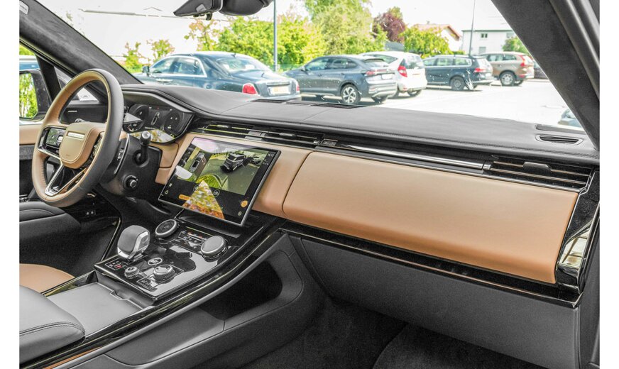 Adaptive cruise control (ACC) with stop & go function and steering assistant, perimetric alarm system, all-wheel steering, audio system: Meridian sound system (800 watts, 19 speakers, subwoofer), electrically adjustable, heated and foldable exterior mirrors with automatic dimming and ambient lighting, exterior mirrors with memory function, indicators with running light, Bluetooth interface, brake callipers painted black, roof in contrasting color, roof liner SV Bespoke Build premium velour in ebony, digital LED headlights with LED signature and image projectors, Dynamic Response System Pro (active chassis stabilization), parking aid front and rear, illuminated door sills with lettering, electric motor 160 kW (hybrid drive), electronic. Limited-slip differential (rear axle), driving assistance system: Adaptive chassis control (Adaptive Dynamics), driving assistance system: Attention assistant, extended (DCR), driving assistance system: Autonomous emergency braking assistant, driving assistance system: Rear impact avoidance including blind spot warning system, driving assistance system: Rear collision warning system (reversing assistant / cross traffic assistant), driving assistance system: Rear collision warning system, driving assistance system: Parking assistant, driving assistance system: Lane keeping assistant (Lane Departure Warning), driving assistance system: Depth measurement when driving through water (Wade Sensing), driving assistance system: Blind spot assistant with lane keeping assistant, driving assistance system: Traffic sign recognition with adaptive speed limiter system, luggage compartment partition (net), seat belt locks, illuminated, head-up display, tailgate / lid electric. operated (open + close), Hybrid 375 kW (engine 3.0 liter - 294 kW), InControl Remote Premium (online services / apps), infotainment system: Pivi Pro, interior: decorative inlays Natural Black, interior lighting Premium, interior mirror, digital (Smart View Mirror), proactive occupant protection system, instrument display TFT color display (13.7 inches), body: 5-door, 4-zone automatic climate control, charging cable with type 2 plug (mode 3), loading sill protection (aluminum), leather package, extended equipment, SV Bespoke Build, steering wheel (leather) with multifunction with bezel in Moonlight, steering wheel with shift paddles / buttons (matt chrome), steering column (steering wheel) electr. adjustable, alloy wheels, air quality sensor, mobile phone interface with wireless charging function, petrol particle filter (GPF), panoramic electric sunroof, digital radio reception (DAB+), wheelbase 2997 mm, tire pressure monitoring system, leather backs of front seats, low emissions according to Euro 6d emissions standard, hardened side windows, service system: Amazon Alexa, seat cover / upholstery: perforated semi-aniline leather (ebony), front seats electrically adjustable (22-way, with memory and massage function), air-conditioned and heated, wireless smartphone interface (Apple CarPlay & Android Auto), automatic soft-close for doors, left sun visor with mirror, two-part (illuminated), sports pedals, start / stop system, surround camera system, premium carpet floor mats, Terrain Response System 2, touchscreen color display (13.1 inches), plain paint, two-stage transfer case (reduction gear)