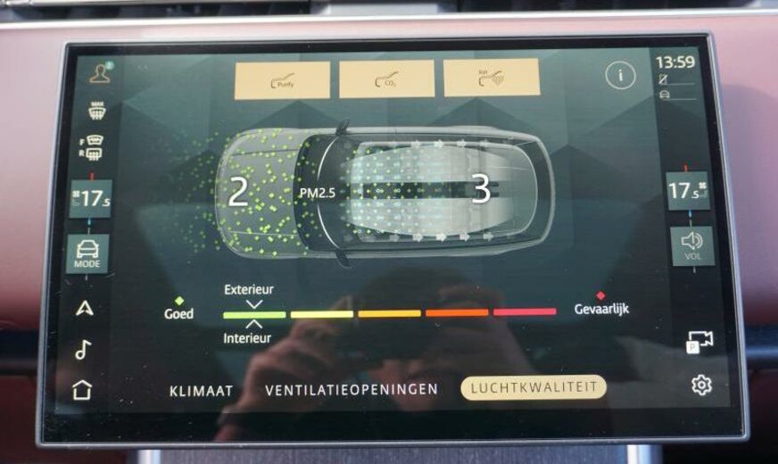 CO2:18gr/km premium upgrade interior pack, 008aa, remote, external sound eng enhancemt, brake pads low copr fr/ zero copr nao rr, brake disc size frt 19/rr 19, charging cable-mode 3 var 2 , three-zone climate control, air quality sensor, voice control, digital audio broadcast dab radio, meridian™ 3d surround sound system, online pack with data plan, wi-fi enabled with data plan, 026bk, loadspace partition net, wireless device charging, pivi pro connected , electronic air suspension, open differential with torque vectoring by braking, gloss black door mirror caps, heated, electric, power fold door mirrors with approach lights and auto-dimming, auto-dimming interior rear view mirror, ebony headlining, soft grain leather steering wheel, rear centre headrest, heated and cooled front seats, driver and passenger seat memory, electrically reclining rear seats, perforated semi-aniline leather seats, rear armrest with twin cupholders, power cushion extension, door armrest-split leather, front driver display, head-up display, heated windscreen, heated washer jets, stop/start, sliding panoramic roof, twin-speed transfer box high/low range , electric cabin pre-conditioning, laminated front and rear side glass, electrically adjustable steering column, bright metal pedals, powerpack 59, locking wheel nuts, 22\\\" wheel, front fog lights, automatic headlight levelling, daytime running lights drl , headlight power wash, configurable cabin lighting, pixel led headlights with signature drl, adaptive cruise control with steering assist, animated directional indicators, double locking, intrusion sensor, satin chrome gearshift paddles, body-coloured roof, lane keep assist, traffic sign recognition and adaptive speed limiter, 3d surround camera, forward facing camera, rear collision monitor, europe nav region 1, windsor leather console, petrol plug-in hybrid, electric rear side window sunblinds, twin-blade driver sunvisor with illuminated vanity mirrors, 116az, ebony carpet, wireless device charging, apple carplay® subject to availability , android auto™ subject to availability , 183ha, public charging cable, front and rear parking aid, leather seatback, 20-way mem htd cld psa + prem, seat combination 303yf/300kw/033av, noble chrome controls, 308ba, 328aa, 382aa, 20-way heated ventilated electric front seats with power recline heated ventilated rear seats, 22\\\" style 1073 gloss black, deep garnet perforated semi-aniline leather seats with deep garnet interior, 22\\\" full size spare wheel, secure tracker pro, ebony headlining, 11.4\\\" rear seat entertainment, privacy glass, domestic plug socket, santorini black, heated steering wheel, shadow exterior pack, front centre console refrigerator compartment, natural black birch veneer